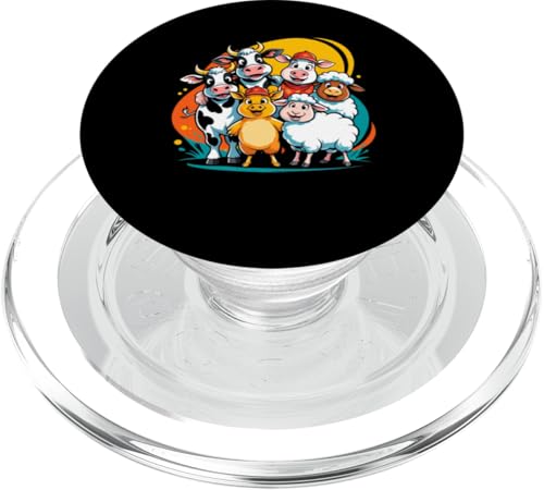 Cartoon Farm Animals Group with Cows Pig and Sheep PopSockets PopGrip for MagSafe