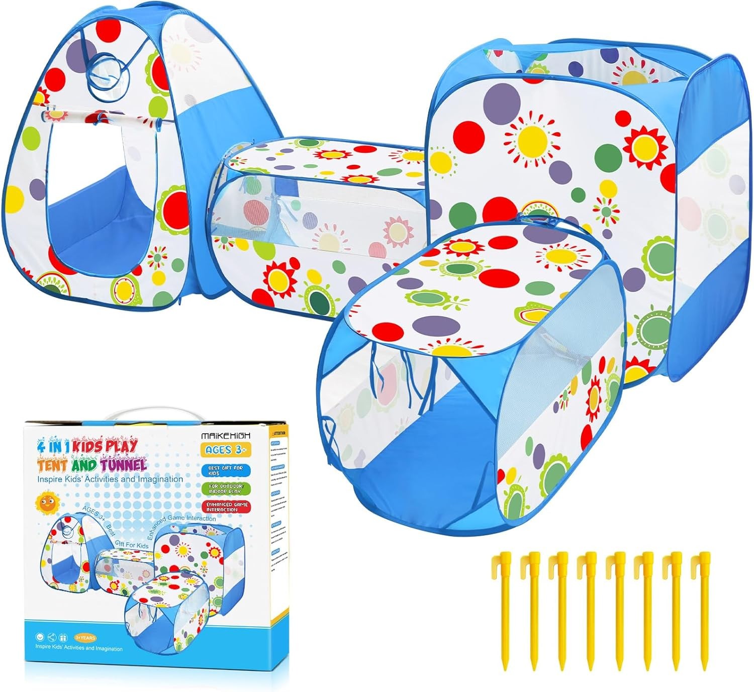 MAIKEHIGH Play Tent Tunnel, 4 in 1 Pop Up Tents Foldable Ball Pit Crawl Tunnel Indoor Outdoor Garden Game Boys Girls Baby Kids Gifts
