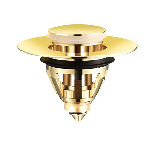 Sink Plug, Bathroom Pop Up Sink Plug Replacement Spring Core Copper, Gold Universal Bath Plug Brass Bounce Core Push Type, Basin Plug No Overflow Filter with Hair Catcher (34-38mm)