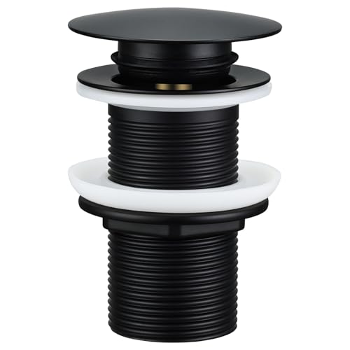 Unslotted Basin Waste Pop Up Plug Bathroom Sink Push Button Matte Black ENKI W11