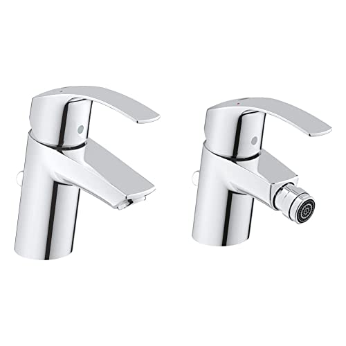 GROHE Eurosmart Single-Lever Basin tap with pop-up Waste, Plug, one Handle Basin Mixer tap, Bathroom, Regular spout, Water-Saving, Easy to Clean + Eurosmart Bidet Tap