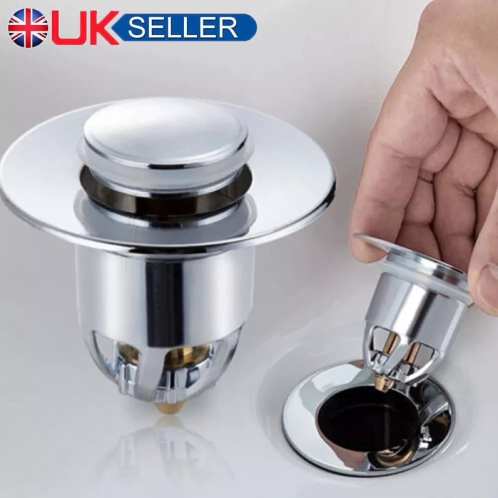 Chrome Bathroom Pop Up Sink Plug Waste Push Type 1 1/4 32mm