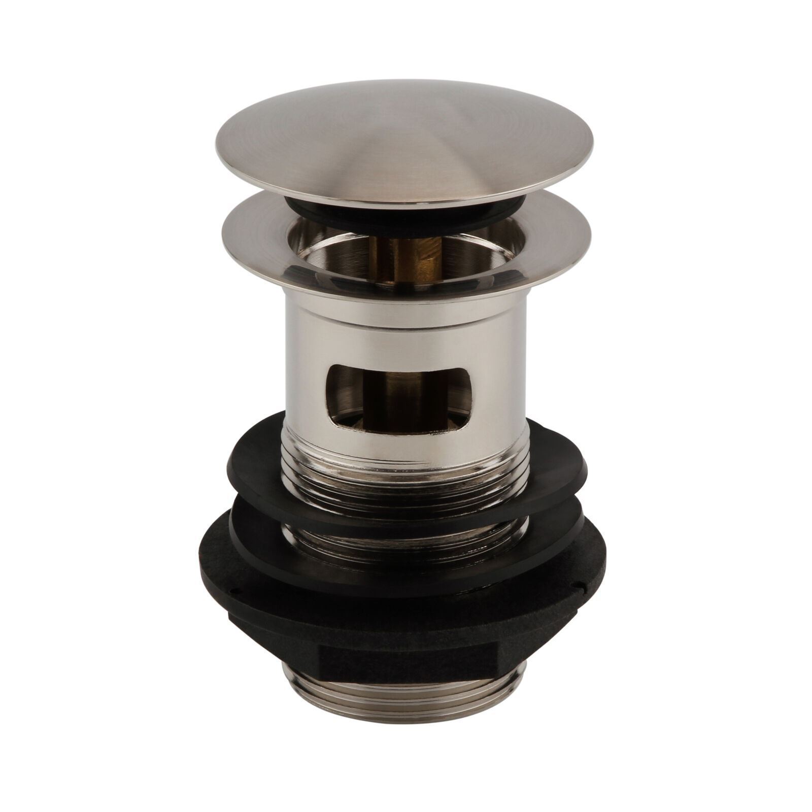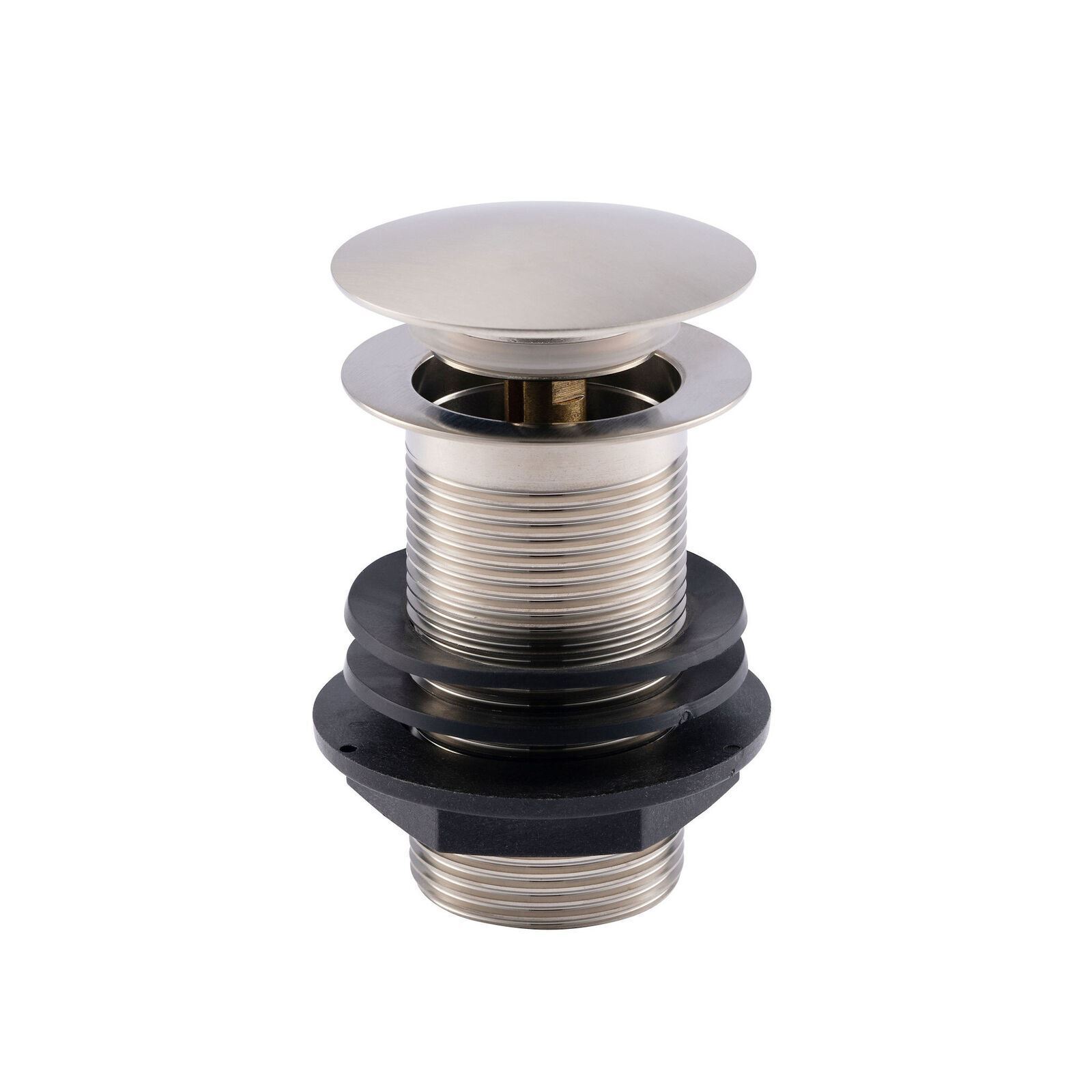 Unslotted Basin Waste Round Pop Up Plug Bathroom Brushed Nickel Brass ENKI W14