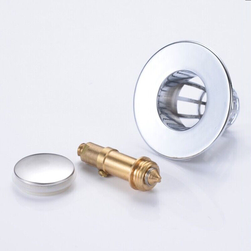 Chrome Basin Waste Sink Push Button Pop Up Bathroom Slotted Unslotted Plug