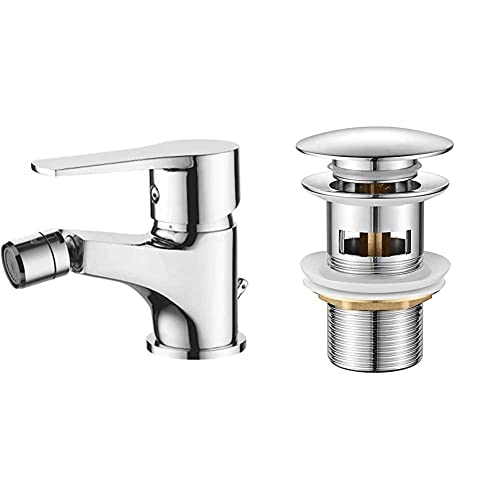 Ibergrif Star, Single Lever Bathroom Mixer Bidet, Basin Tap, Chrome, M15057 & M20502 Pop Up Sink Plug Replacement, Basin Waste, Slotted Click Clack Waste with Overflow