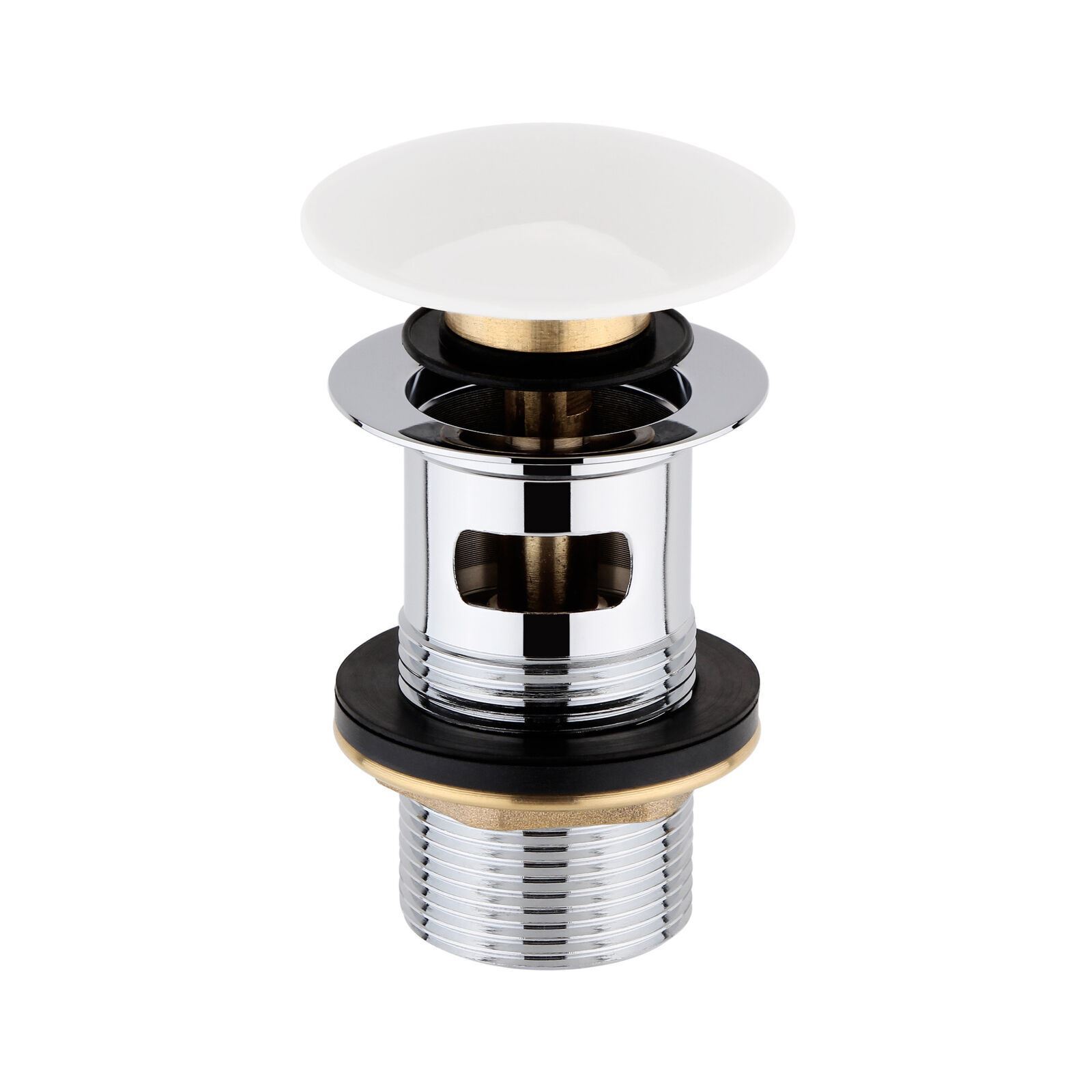Unslotted Basin Waste Round Pop Up Plug Bathroom White Solid Brass ENKI W61