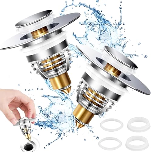2 Pack Sink Plugs Bathroom Plug, Stainless Steel Bathroom Basin Plug Pop up