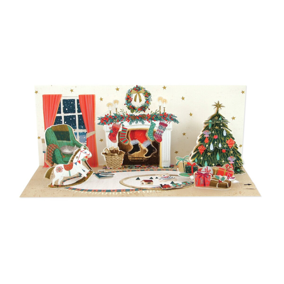 Santa's Arrived Panoramic Pop-Up Christmas Greeting Card Up With Paper Pop Ups