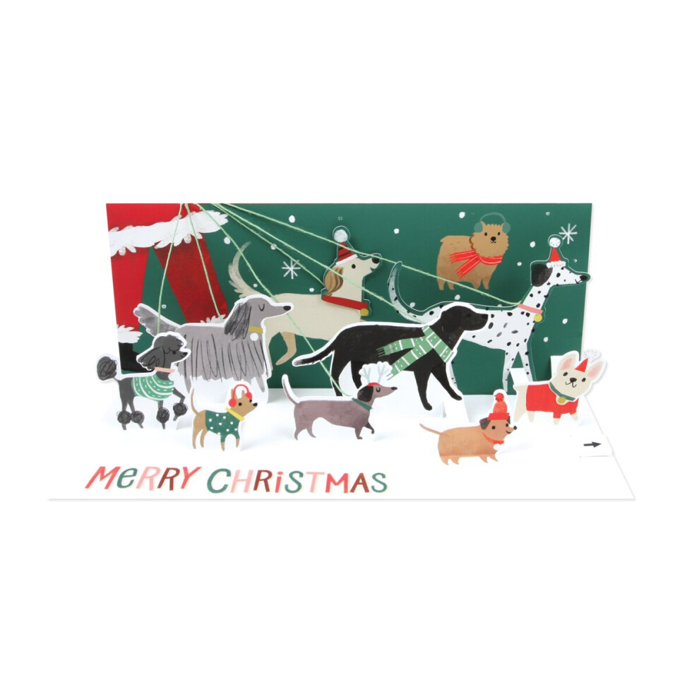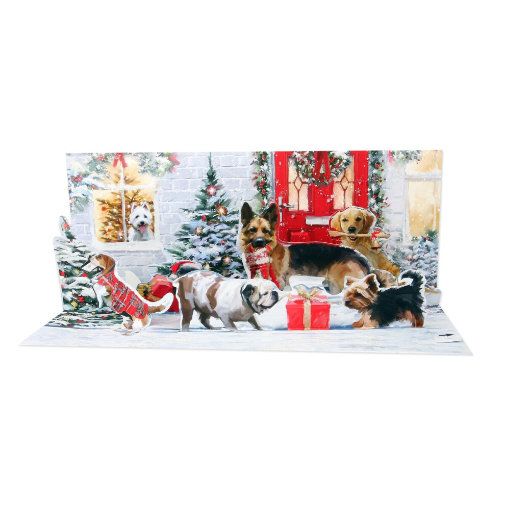 Dogs Xmas Fun Panoramic Pop-Up Christmas Greeting Card Up With Paper Pop Ups