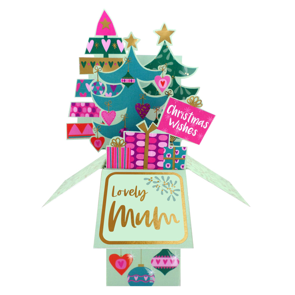 Clever Cubes Pop Up Lovely Mum Festive Trees Christmas Card 3D Xmas Card