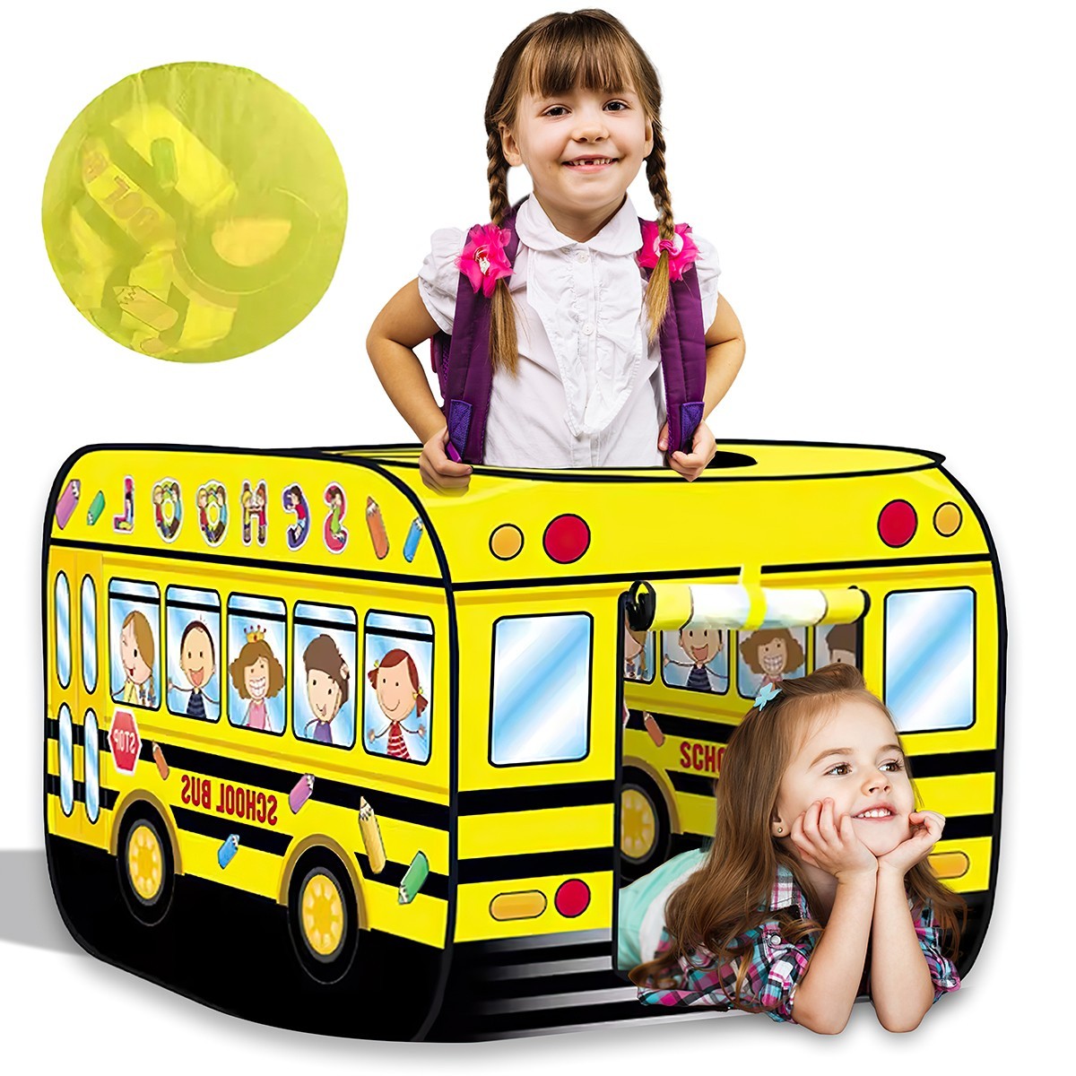 Playhouse Indoor Outdoor Play Tent , Foldable Pop-Up Yellow Tent Game Toys Set
