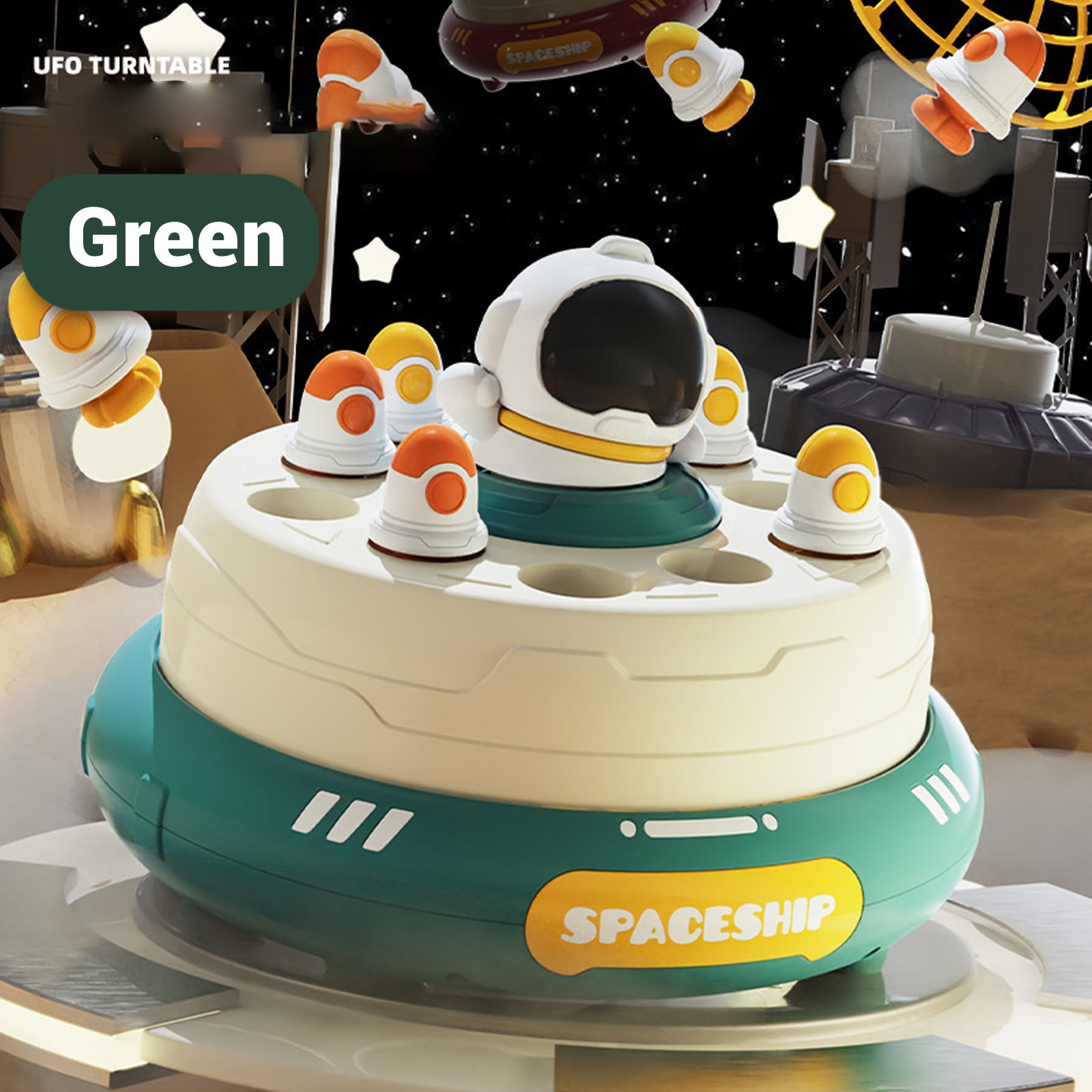 For Astronaut, Handheld Puzzle Game Toy, with 2 Catch Baskets, Interactive Battery Powered Rotating Pop Up, Board Game (Green)