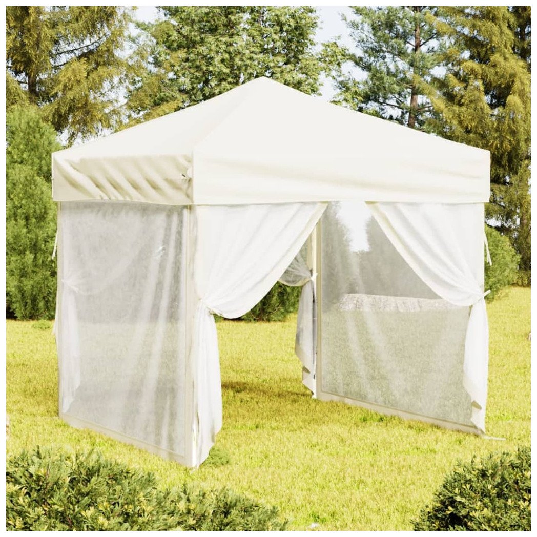 Folding gazebo 2 x 2 m cream 210D Oxford polyester canopy steel frame pop-up