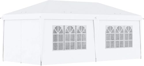 Outsunny 3 x 6 m Garden Pop Up Gazebo, Wedding Party Tent Marquee, Water Resistant Awning Canopy with Sidewalls, Windows, Carry Bag, White