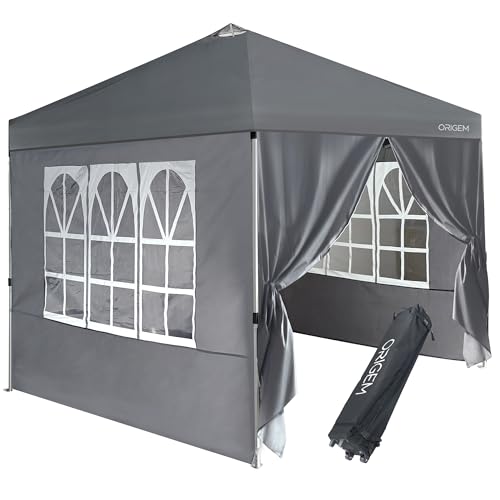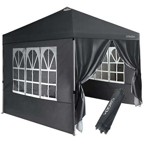 Origem Pop Up Gazebo with Sides 3m x 3m & 2.5m x 2.5m & 3m x 6m, One-Touch Assembly & Wheeled Storage Bag, 210D Oxford Fabric Heavy Duty Gazebo for Camping, BBQ, Outdoor Events, School, Family