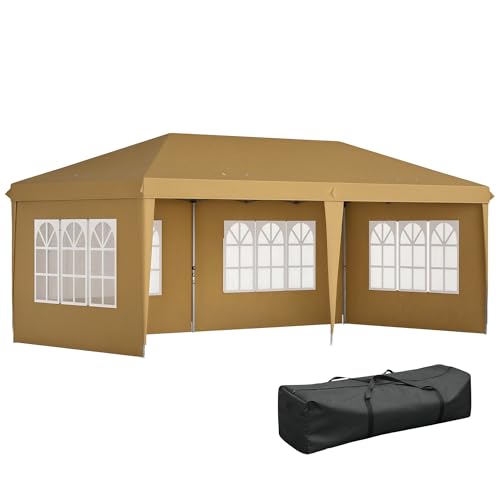 Outsunny 3 X 6 M Pop Up Gazebo With Sides And Windows, Height Adjustable Party Tent With Storage Bag, Event, Brown