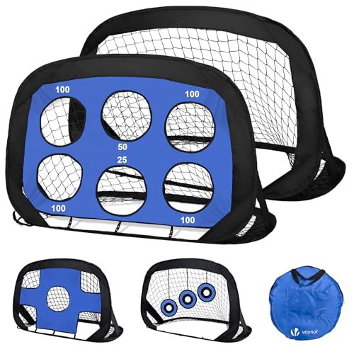 VOUNOT® Set of 2 Pop up Goals for Kids, 4-in-1 Football Net for Children, Foldable Mini Soccer Target Net, Football Training Equipment, Indoor & Outdoor