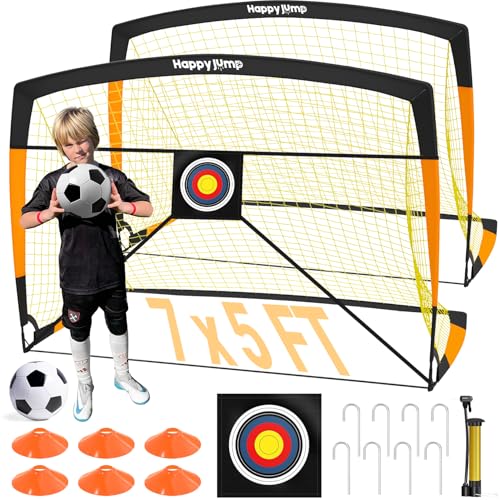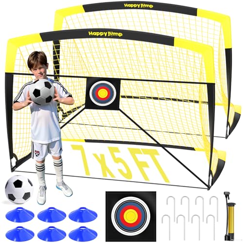 Happy Jump Set of 2 Pop-Up Football Goals with Targets, Ball & Pump – Portable Garden Training Goals, 7x5 FT BO Pro