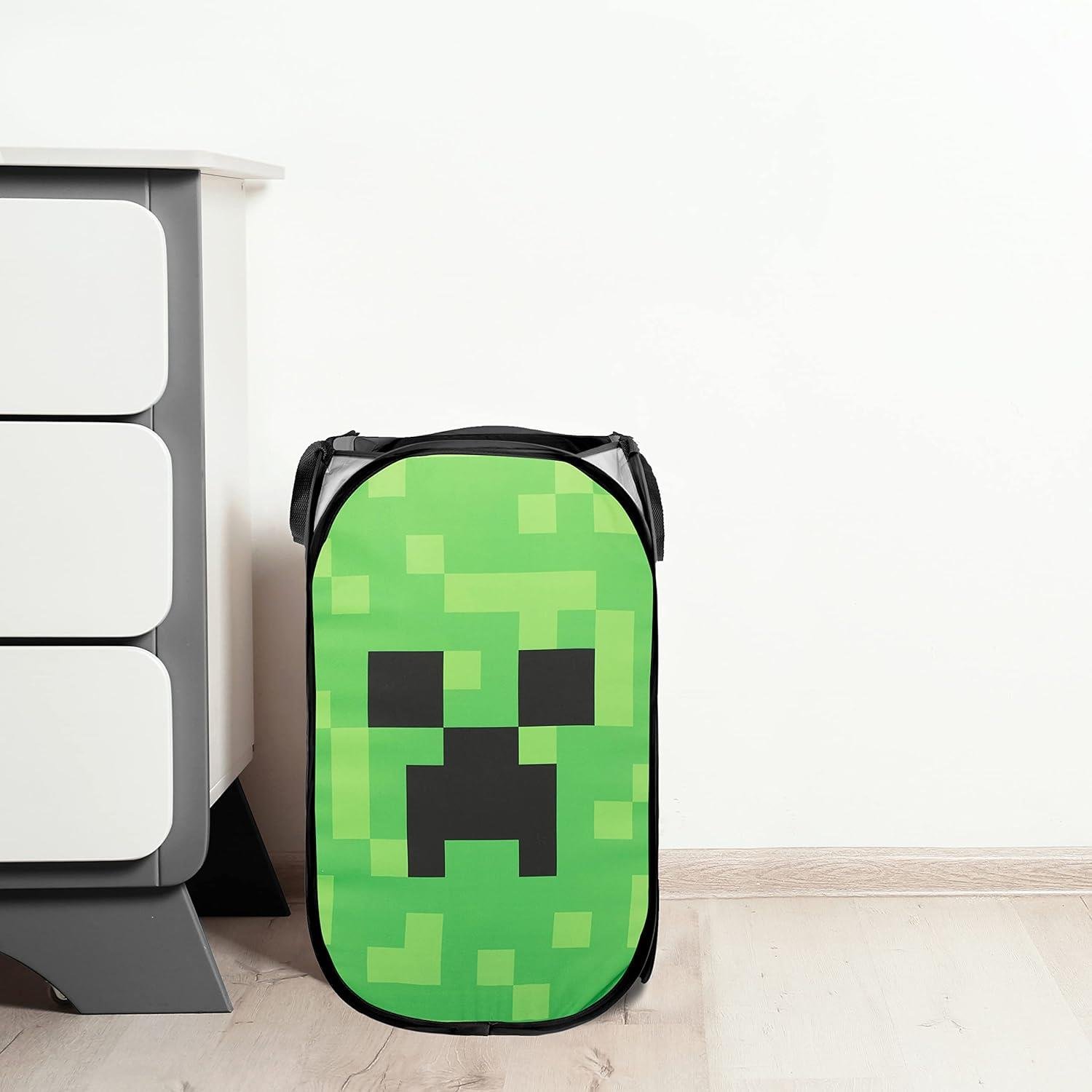 Jay Franco Minecraft Creeper 80L Pop-Up Laundry Basket - Hamper for Clothes or Toys