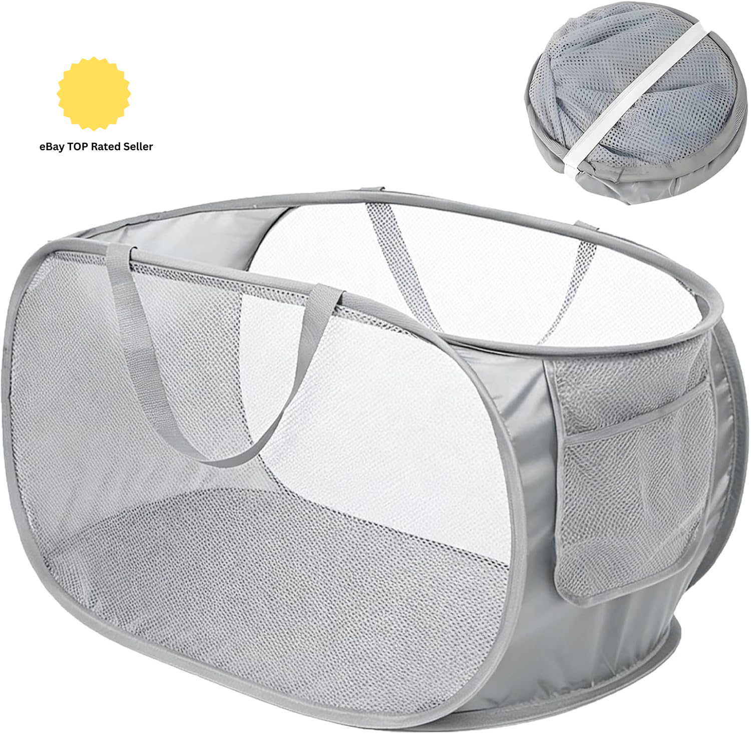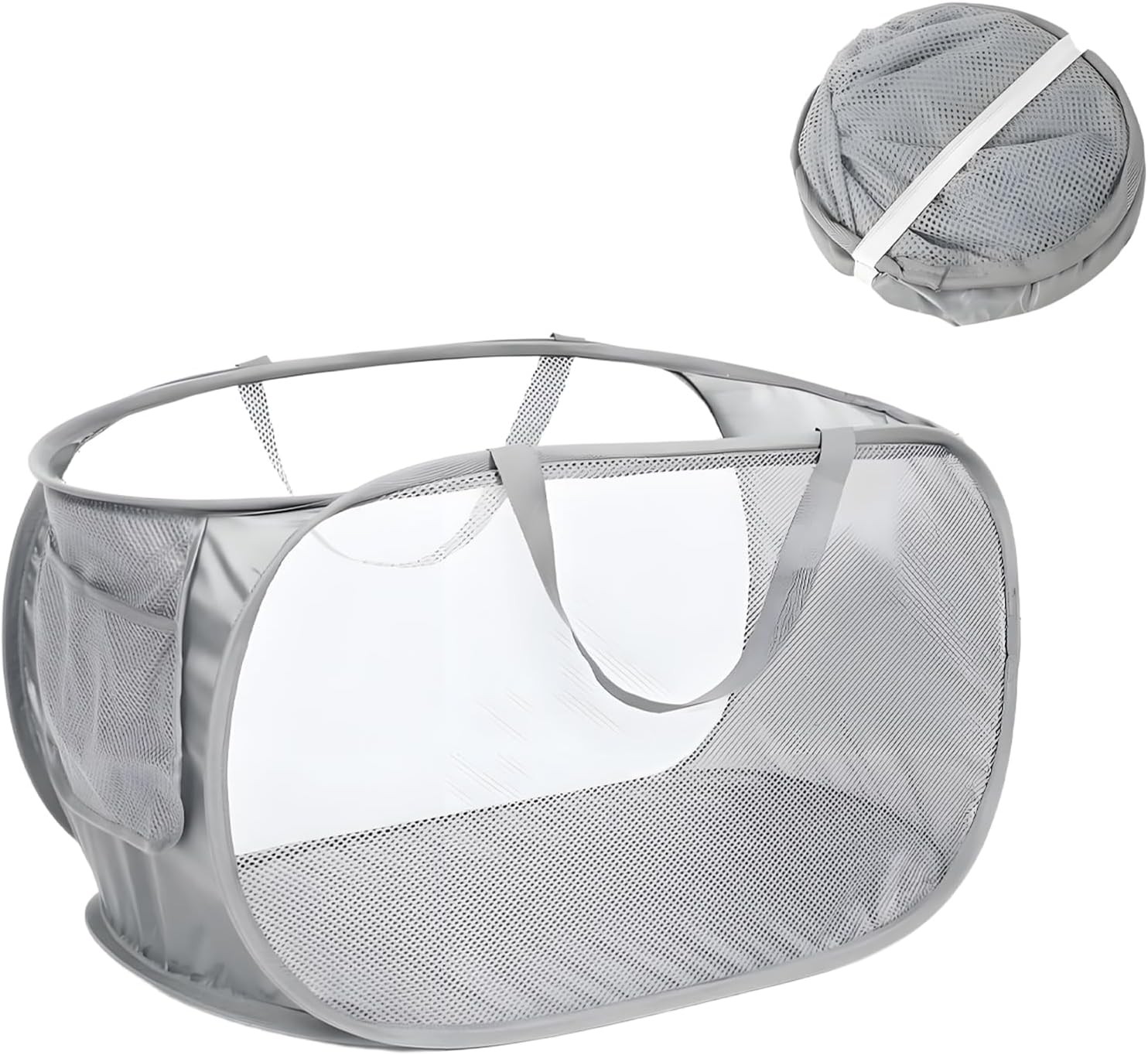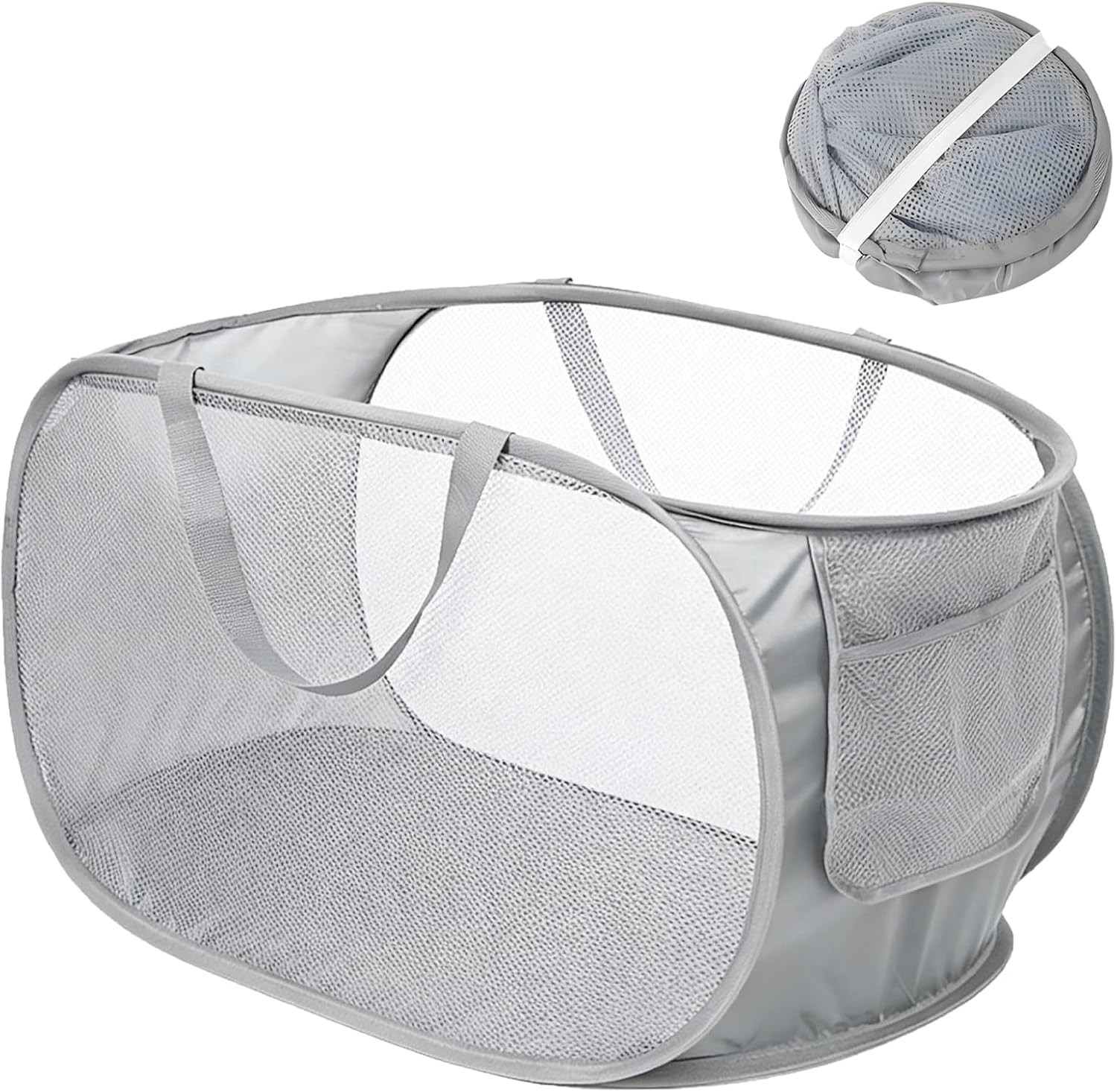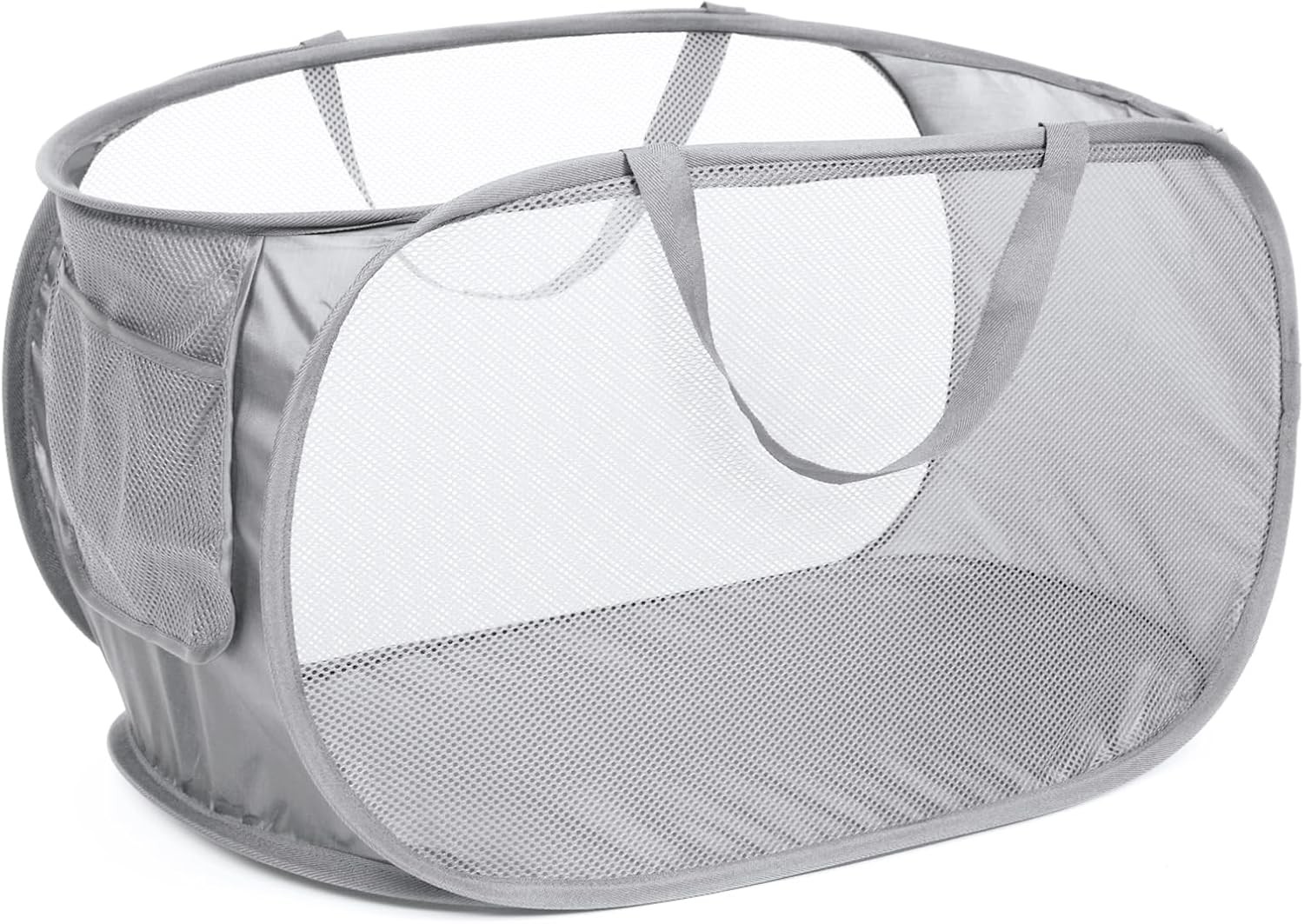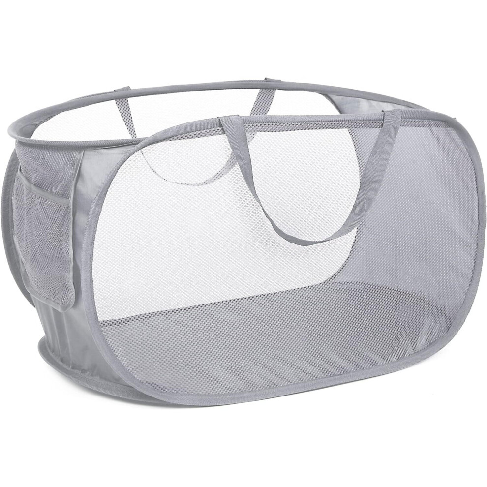 Durable Collapsible Laundry Basket, Mesh Pop up Laundry Hamper with Side Pocket,