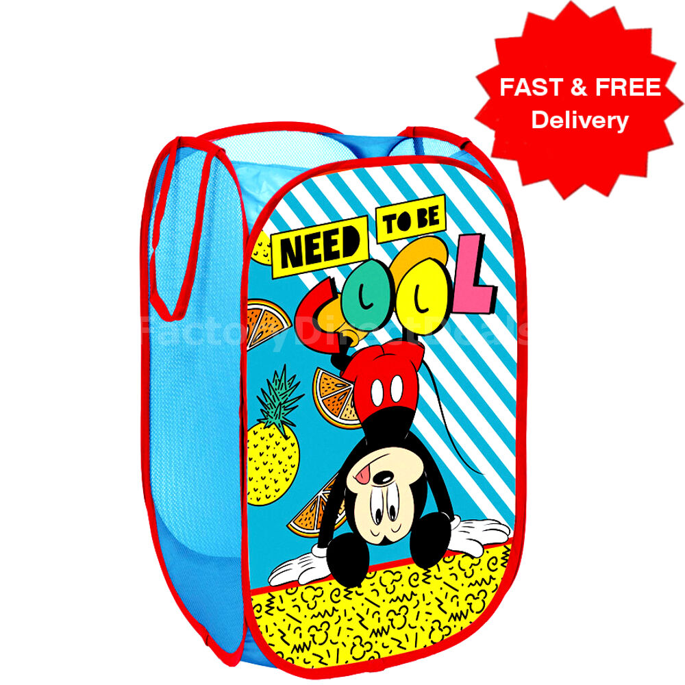 DISNEY Mickey Pop Up Mesh Hamper Laundry Basket Bag Bin Tidy Storage Toy Kids
