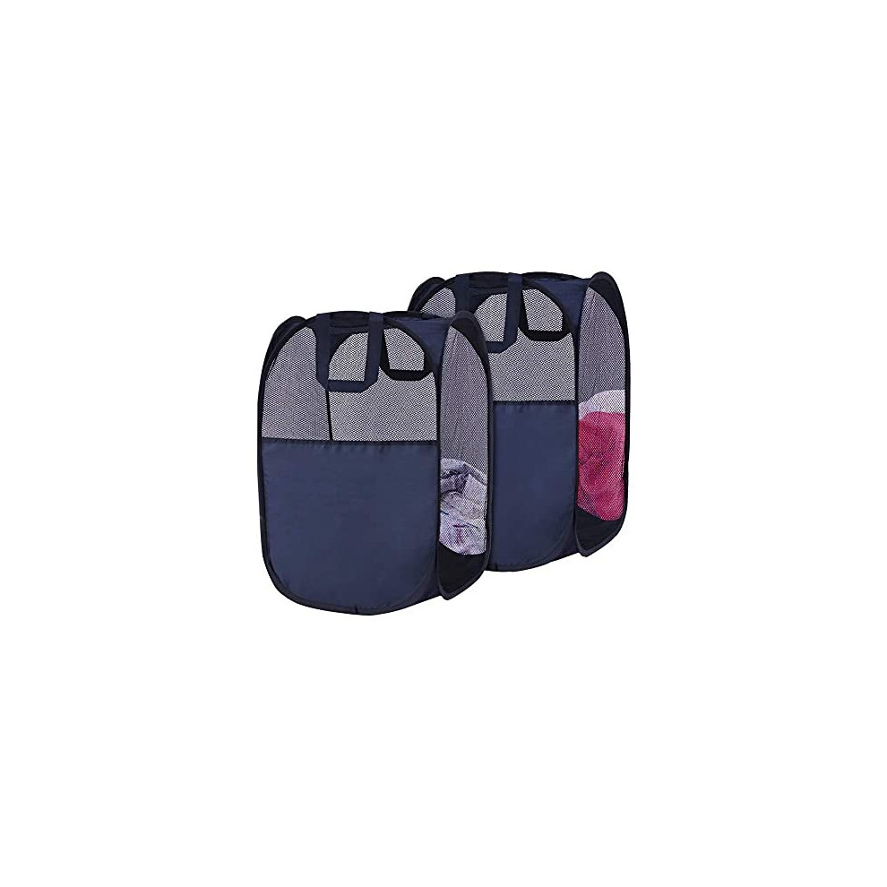 Simple Houseware 2 Pack - Mesh Pop-Up Laundry Hamper Basket With Side Pocket, Dark Blue