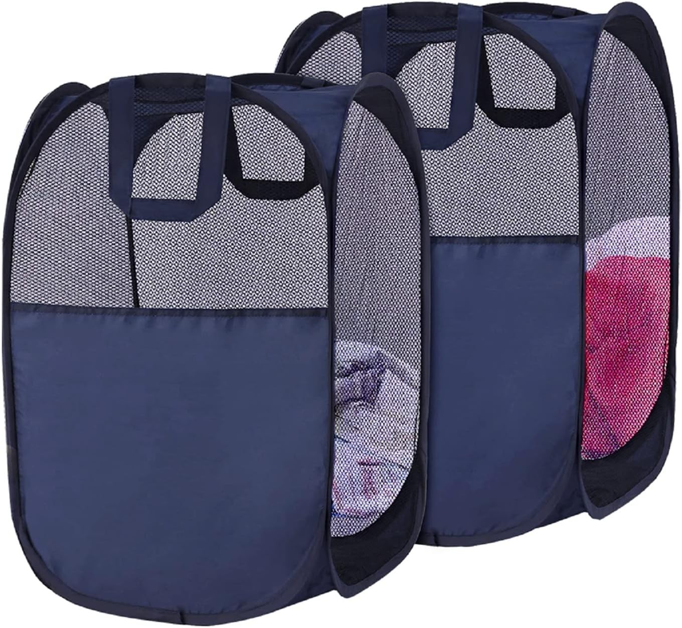 SUPNFOX 2Pack Mesh Collapsible Laundry Baskets, Pop up Laundry Hamper Bins,Folding Washing Basket with Handles for Clothes Tidy Storage-Navy
