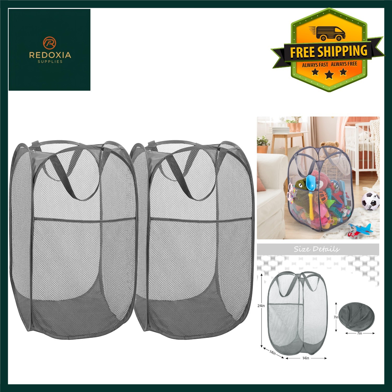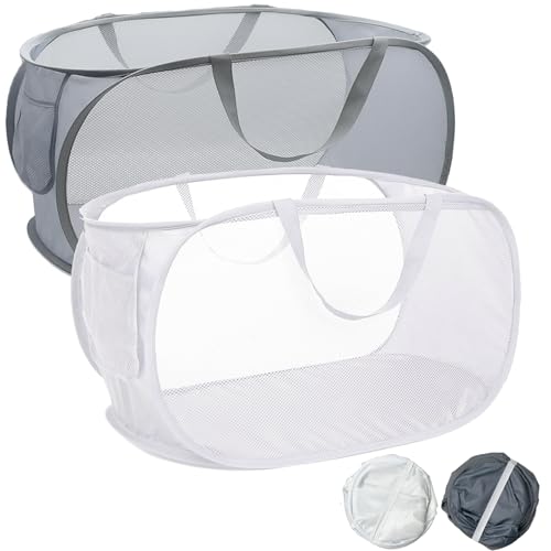 2 Pack Mesh Collapsible Laundry Baskets, Pop up Laundry Hamper Bins,Folding Was