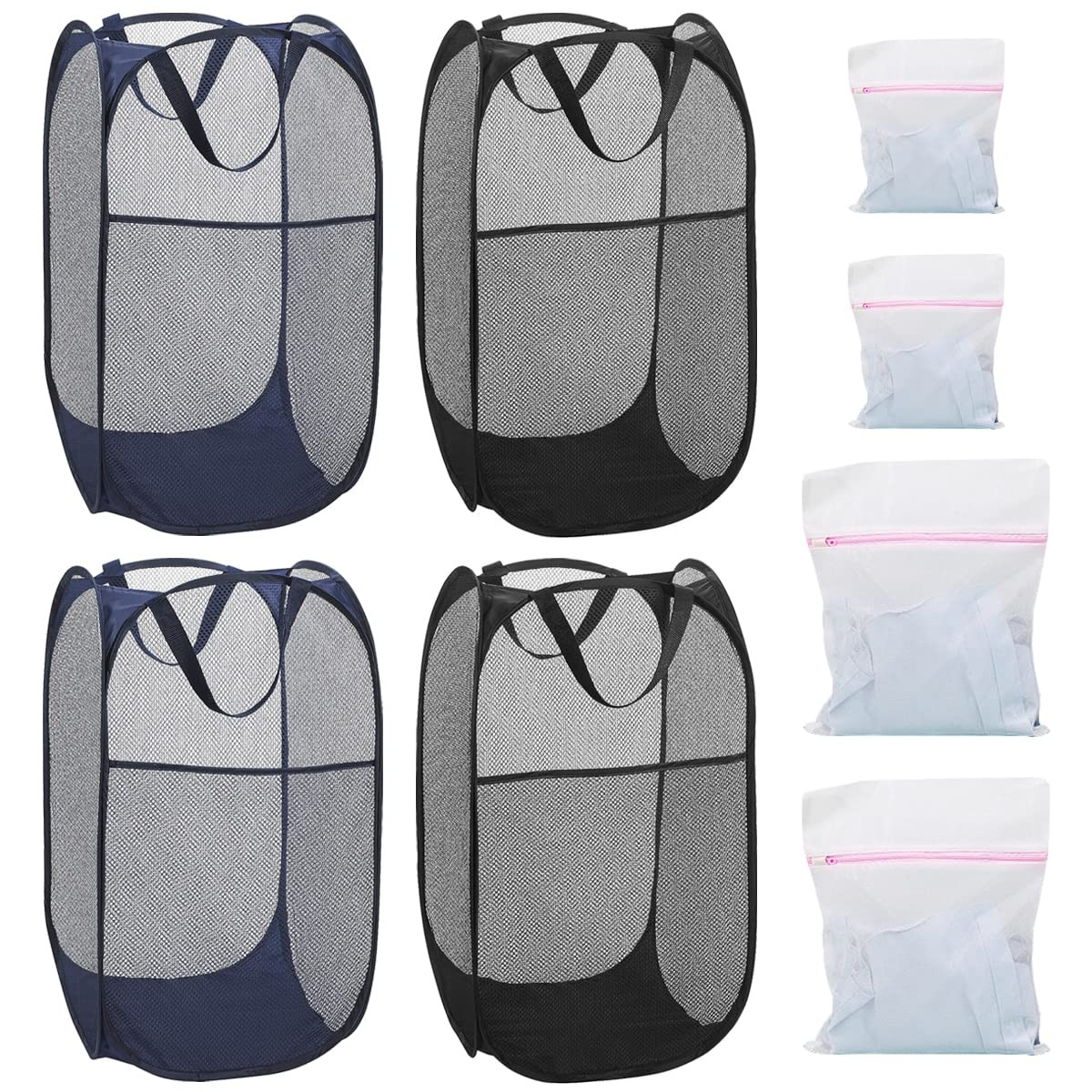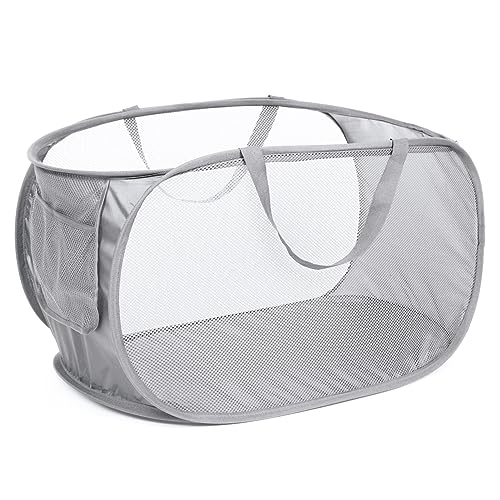 Durable Collapsible Laundry Baskets, Mesh Pop Up Laundry Hamper with Handy Pock