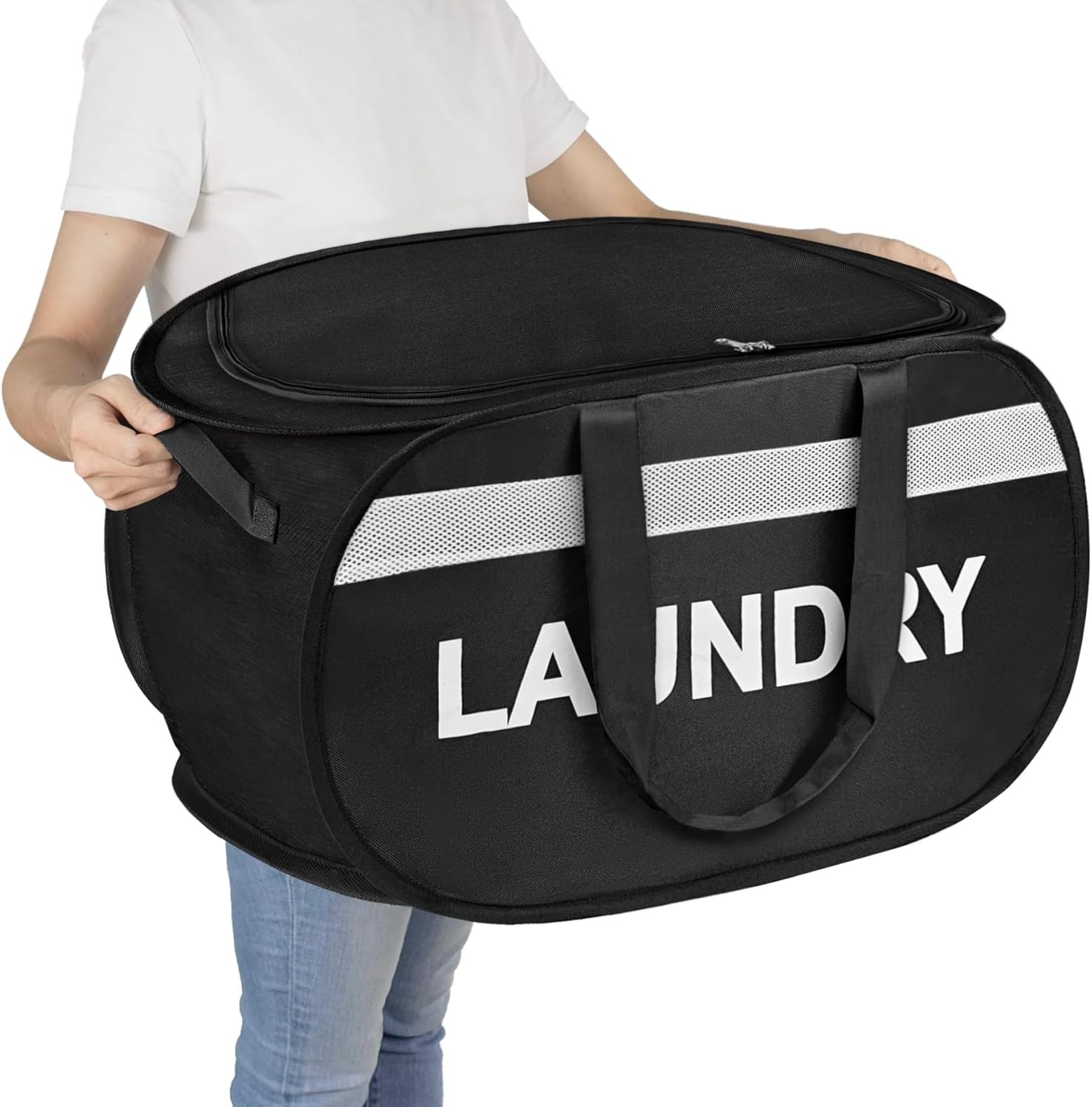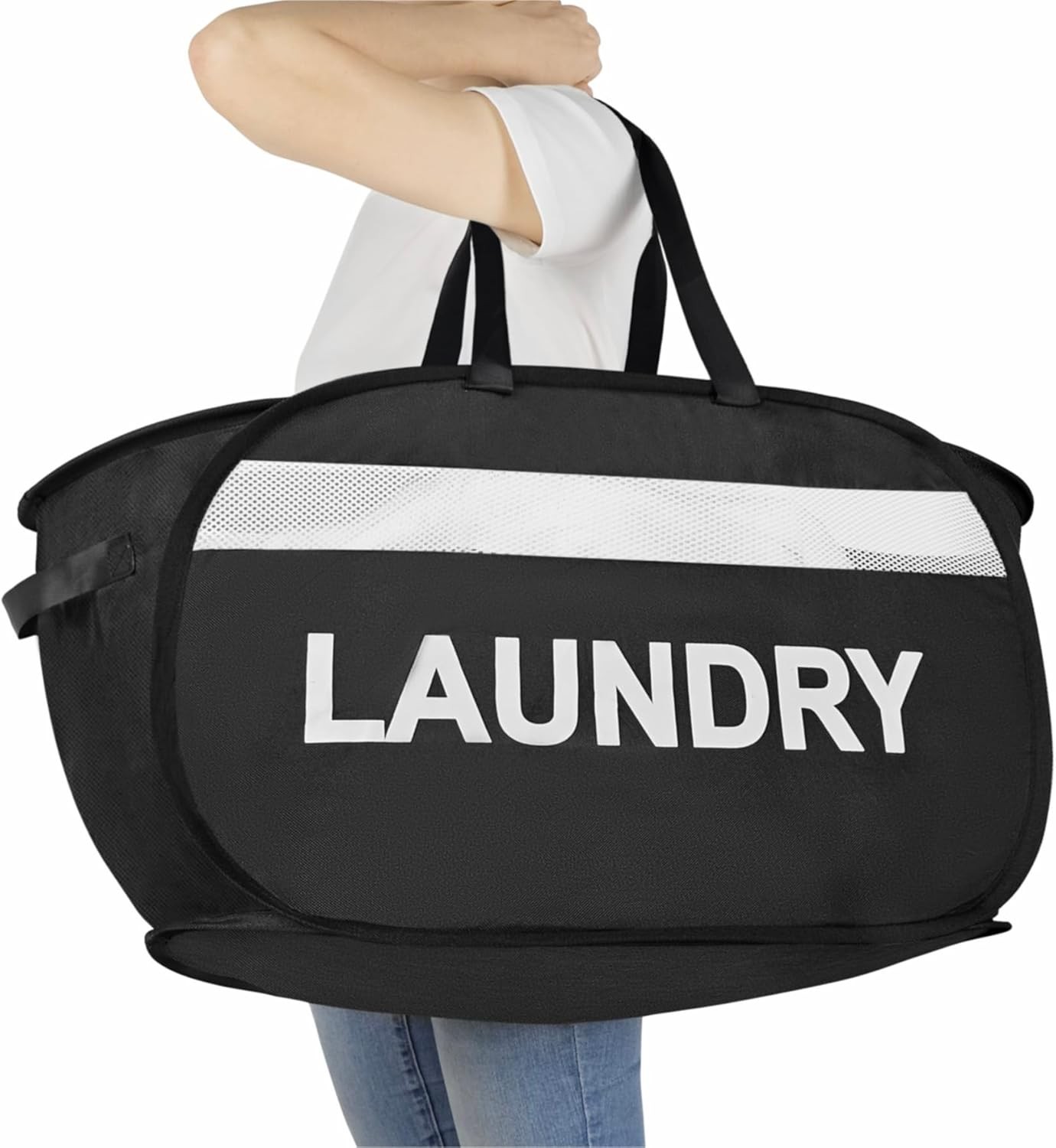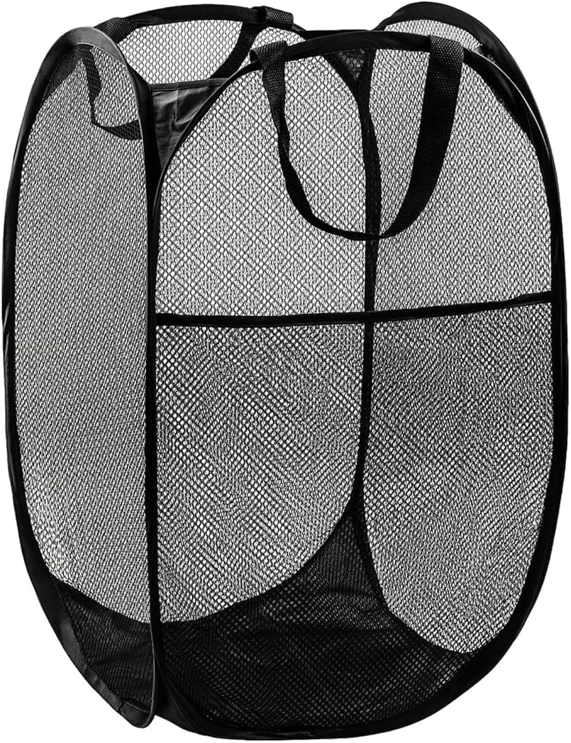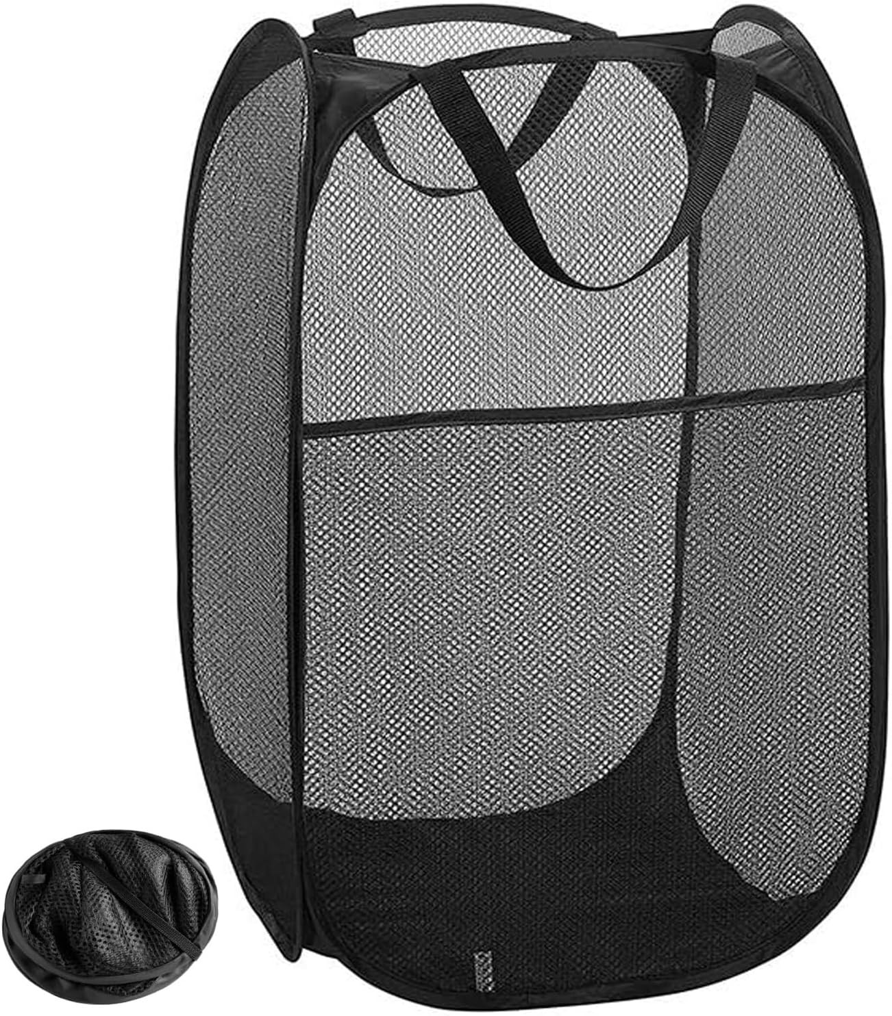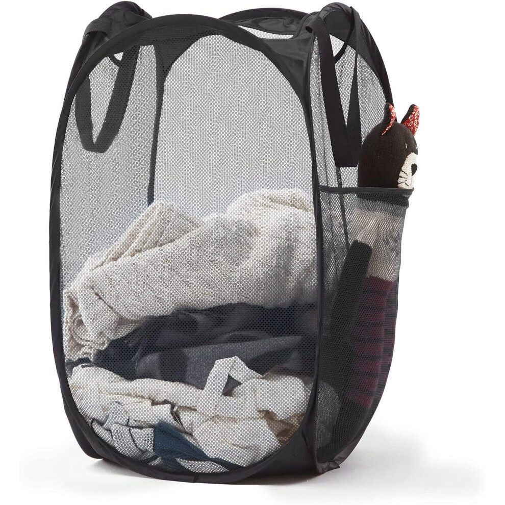 Mesh Pop Up Laundry Hamper with Durable Handles - Portable Collapsible Clothes Baskets for Dorm, Bathroom & Travel (Black)