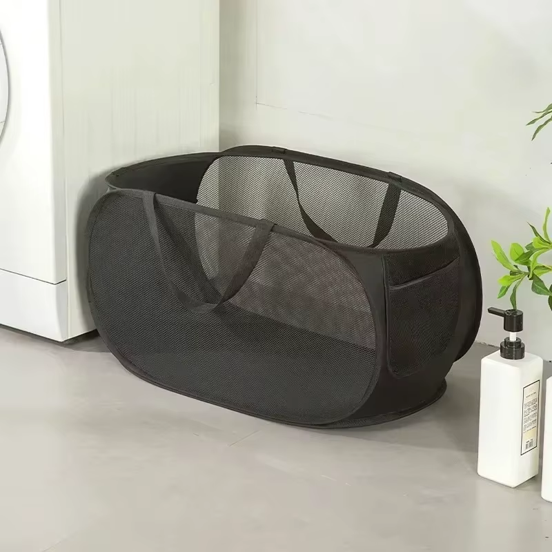 Portable Mesh Pop-Up Laundry Hamper Breathable Collapsible Wide Opening
