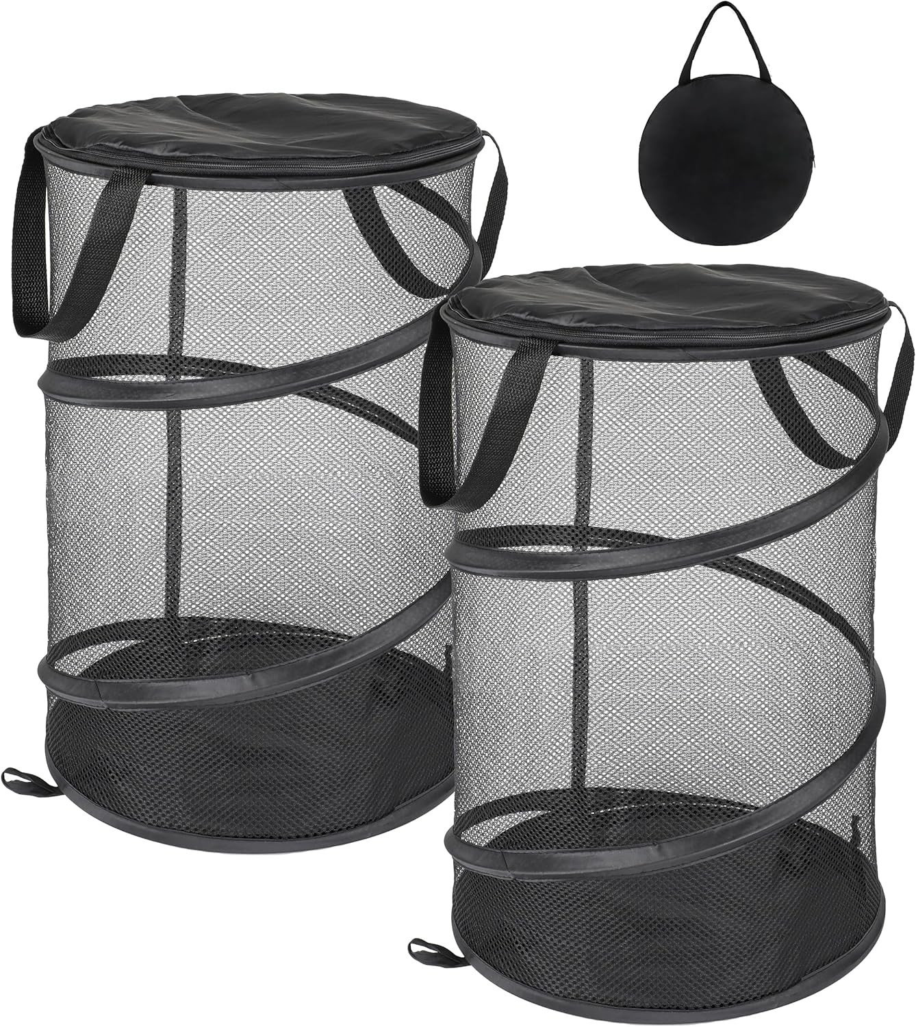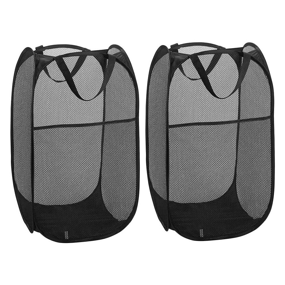 2 Pack Laundry Basket Collapsible Pop Up Mesh Laundry Hamper (Black)