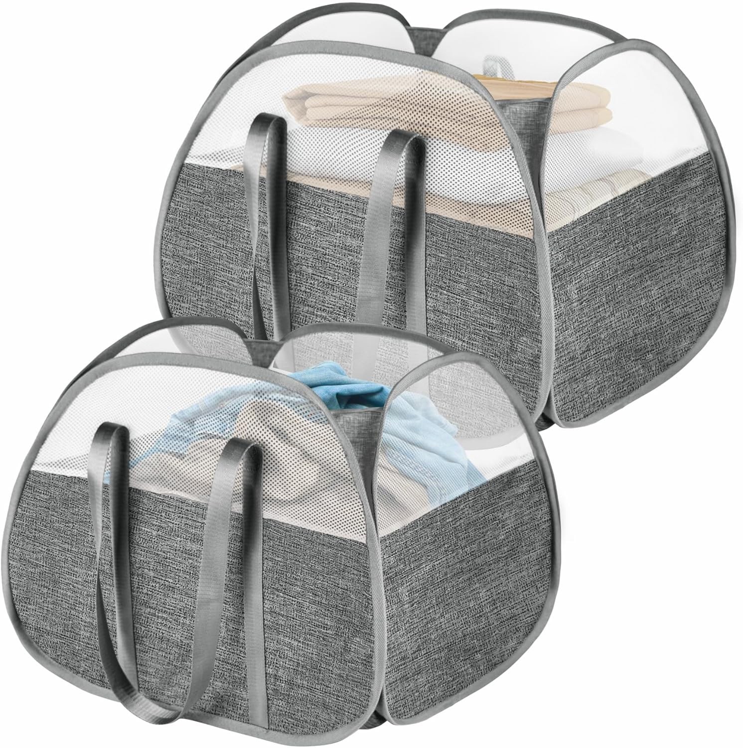 2 Pack Mesh Collapsible Laundry Baskets, Pop up Laundry Hamper Bins,Folding Wash
