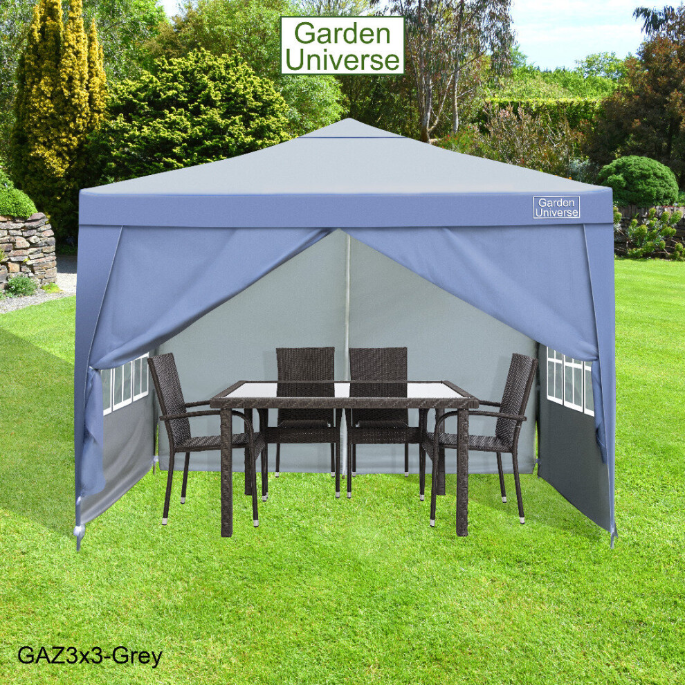Gazebo 3x3m By Garden Universe Heavy Duty Pop up Frame Marquee Canopy Tent Grey