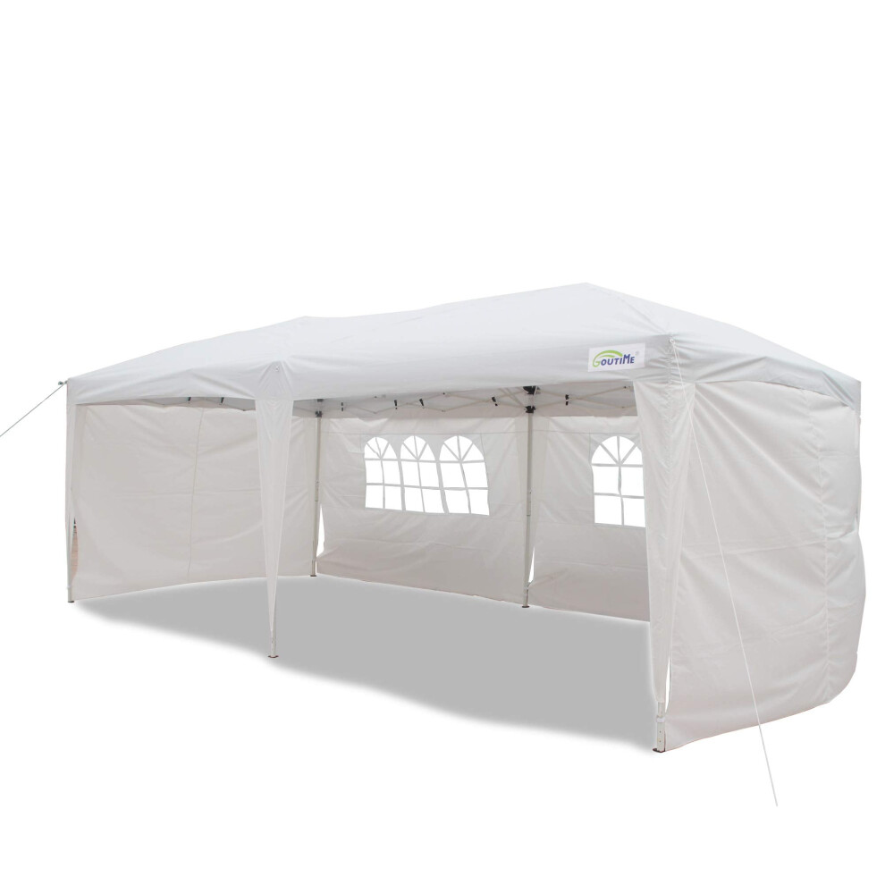 Goutime Easy Pop up Canopy gazebo Marquee Tent,3x6m, W/4 Removable Sidewalls W/wheel Bag,Garden Gazebo Height Adjustable, Party Tent Wedding Water Resistant AwningAll Weather Gazebo Camping (White)