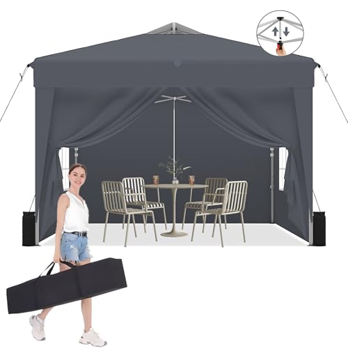 DADAWAY Gazebo with Sides 3m x 3m, Waterproof and UV Resistant Party Pop Up Gazebo Marquee with Carry Bag and 4 Sandbags, Dark Gray