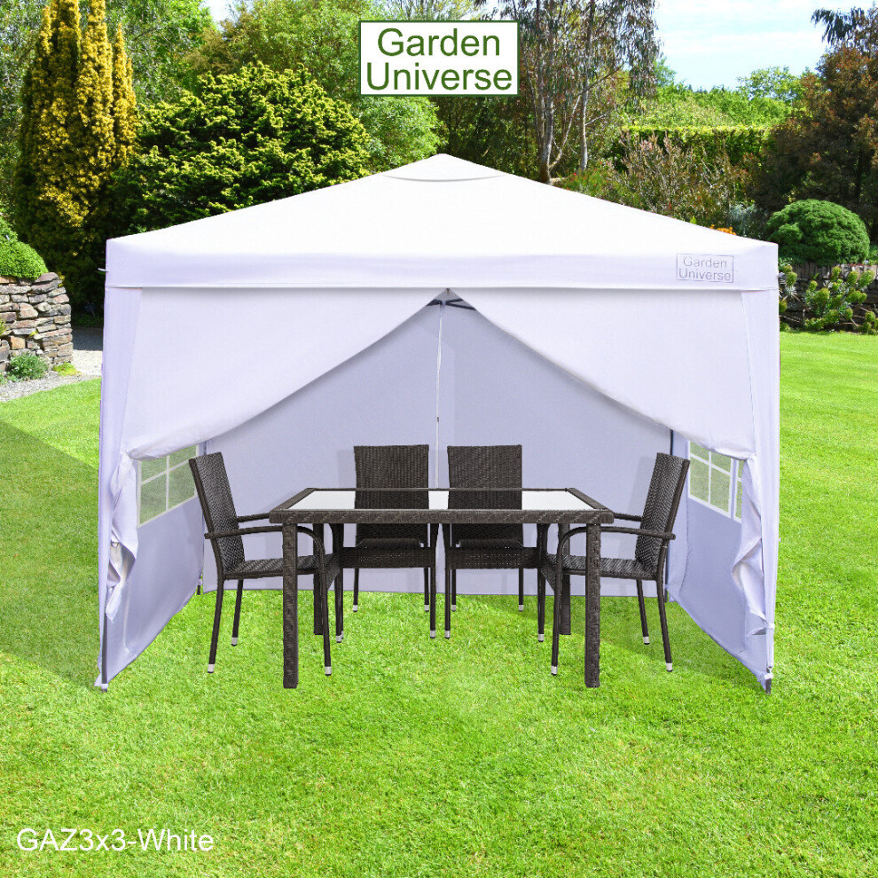 Gazebo 3x3m By Garden Universe Heavy Duty Pop up Frame Marquee Canopy Tent White