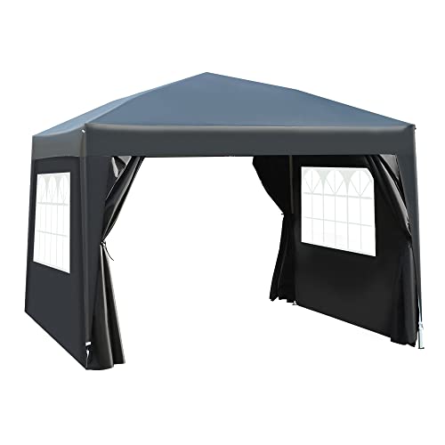 Outsunny Garden Pop Up Gazebo Marquee Party Tent Canopy With Free Carrying Case, Removable 2 Walls, 2 Windows, 2m X 2m, Grey