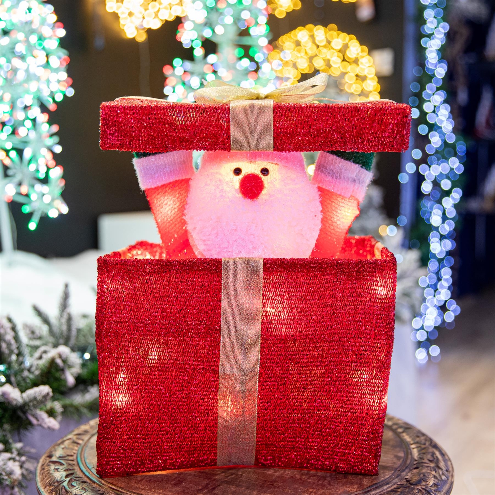 30cm LED Gift Box Christmas Santa Pop-Up Parcel Presents Table Window Xmas Decor