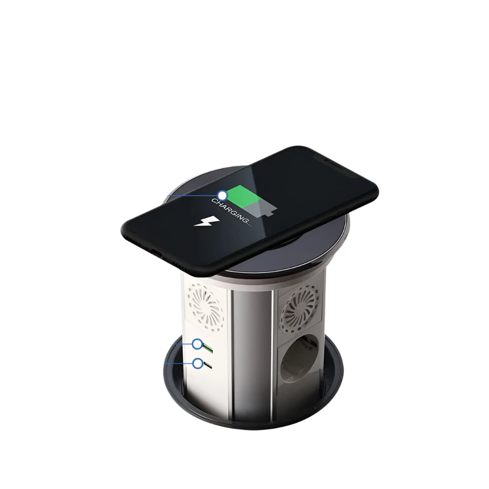 Wireless Power Strip Concealed Pop Up Outlet Table Connection Box Desktop Socket with 2 USB Charging Port