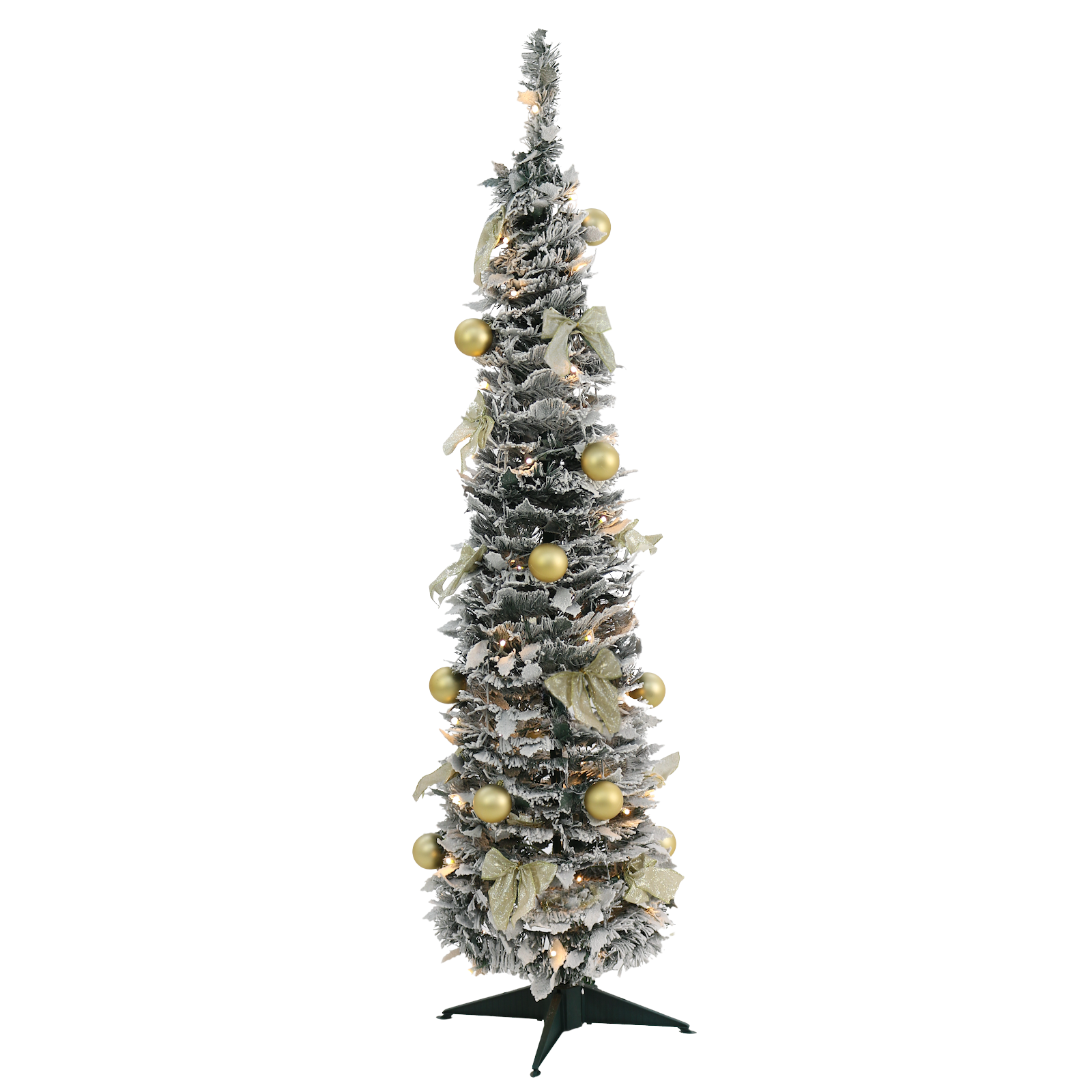 5ft Slim Pre Lit Pop Up Flocked Christmas Tree Gold Baubles Bows Mr Crimbo New