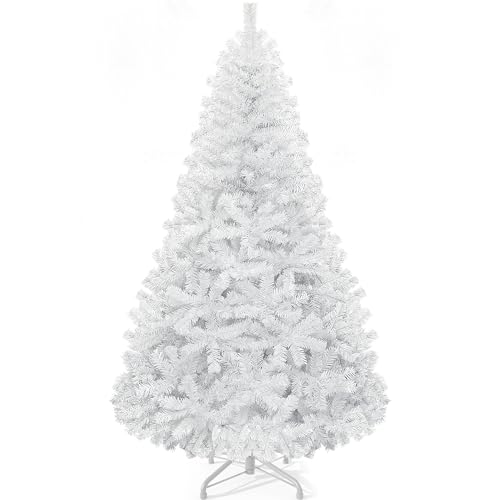 YITAHOME 6ft White Artificial Christmas Tree, All-White Christmas Pine Tree with 818 Tips, Foldable Metal Stand & Metal Frame, Easy Assembly Pop Up Christmas Tree for Home Party, 182 x Φ115cm