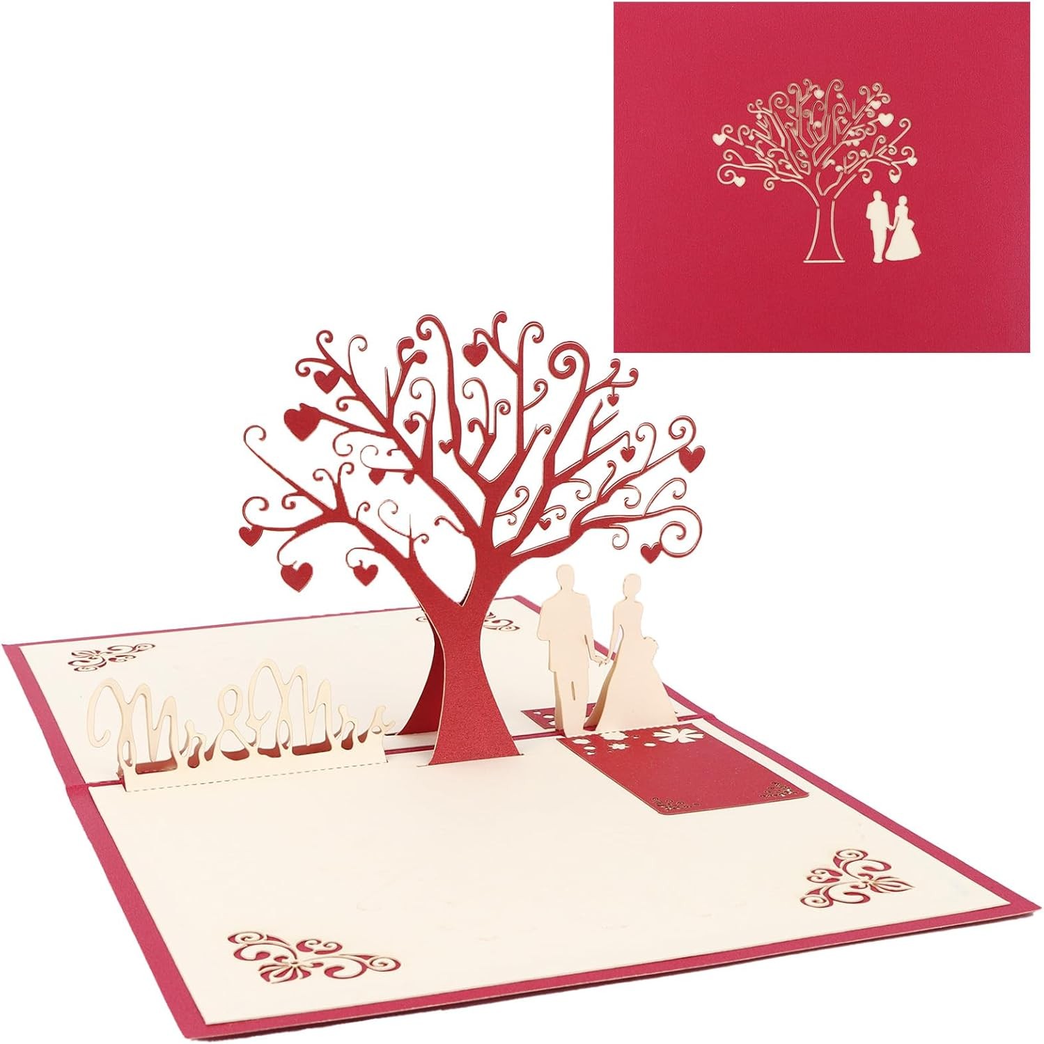 3D Pop Up Love Tree Valentines Card with Envelope, Romantic Heart-Shaped Design
