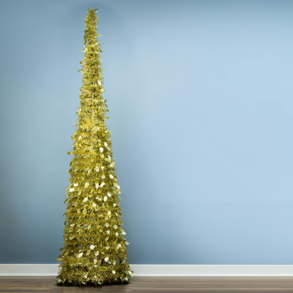 (6ft) The Slim Gold Tinsel Pop Up Christmas Tree (5ft to 7ft)