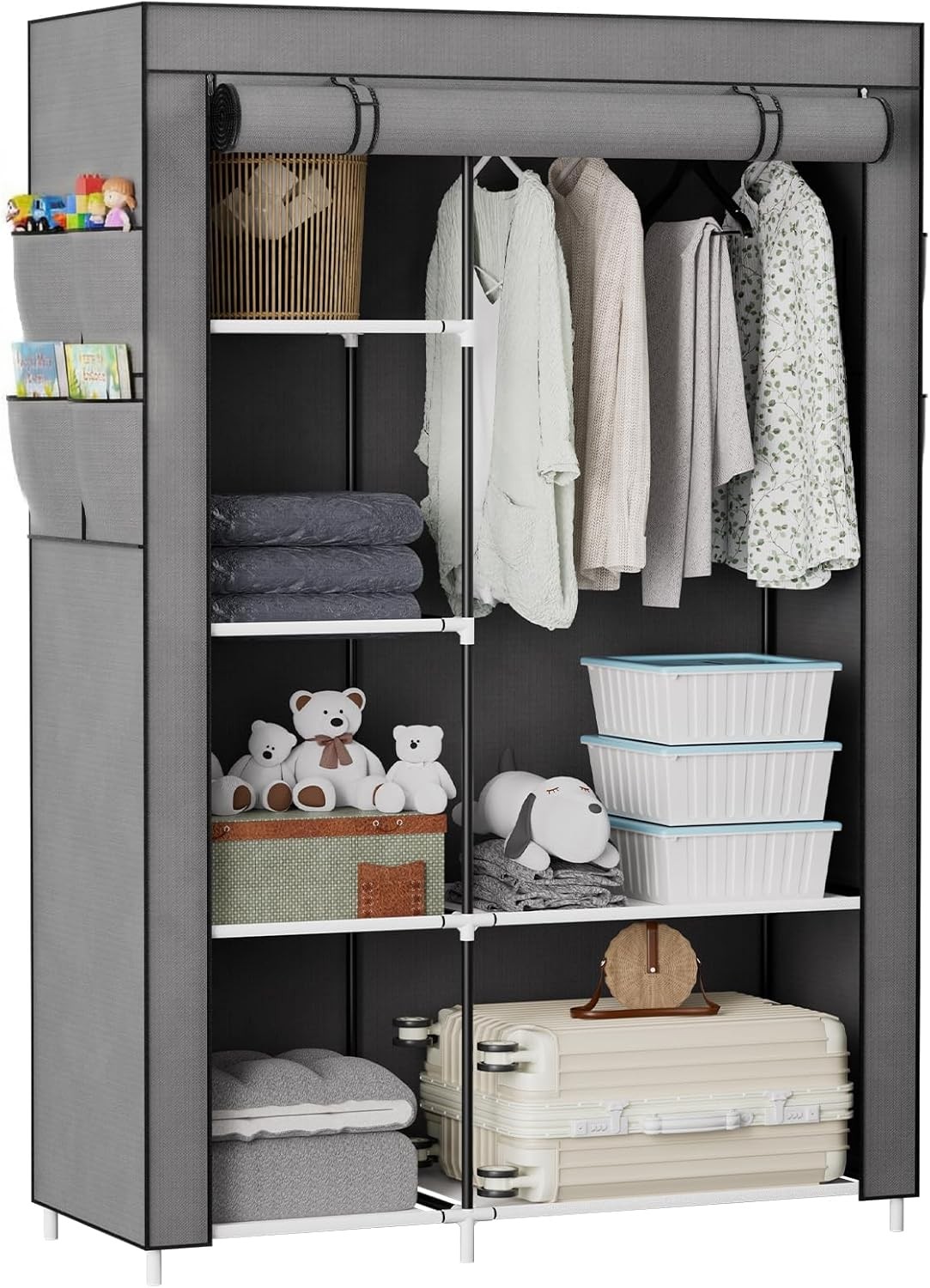 Portable Closet Wardrobe - Fabric Storage with Cover, Hanging Rail, and Storage Areas, Pop-Up Design, Durable Tubes for Bedroom Organization
