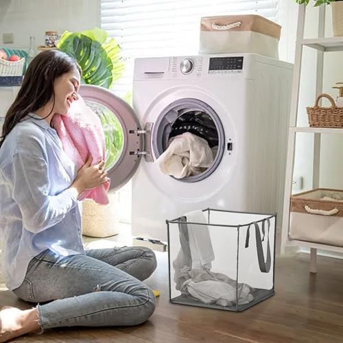 Foldable Laundry Hamper, Pop Up Mesh Washing Laundry Basket with Sturdy Mesh Construction, Portable Storage Basket for Home Dorm Travel Use, Large