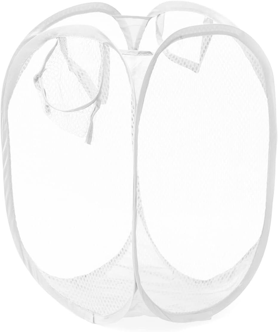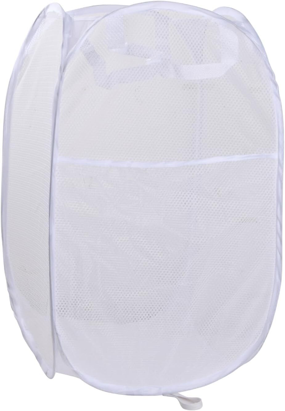 WARESHARK Laundry Bag Pop Up Washing Foldable Basket Mesh White