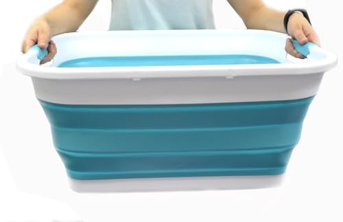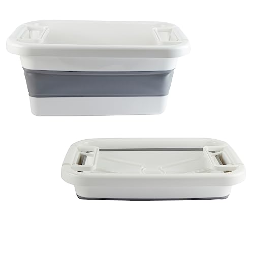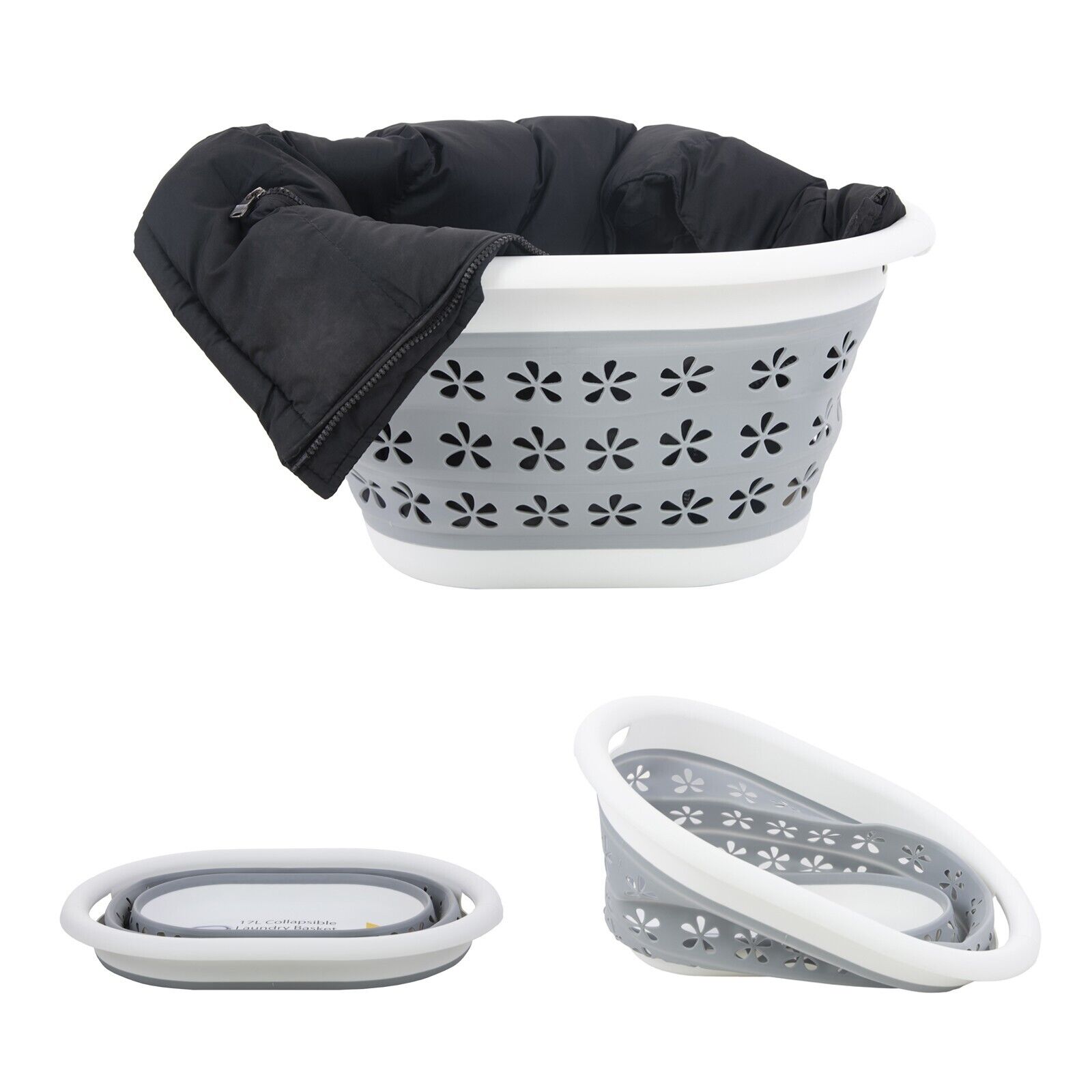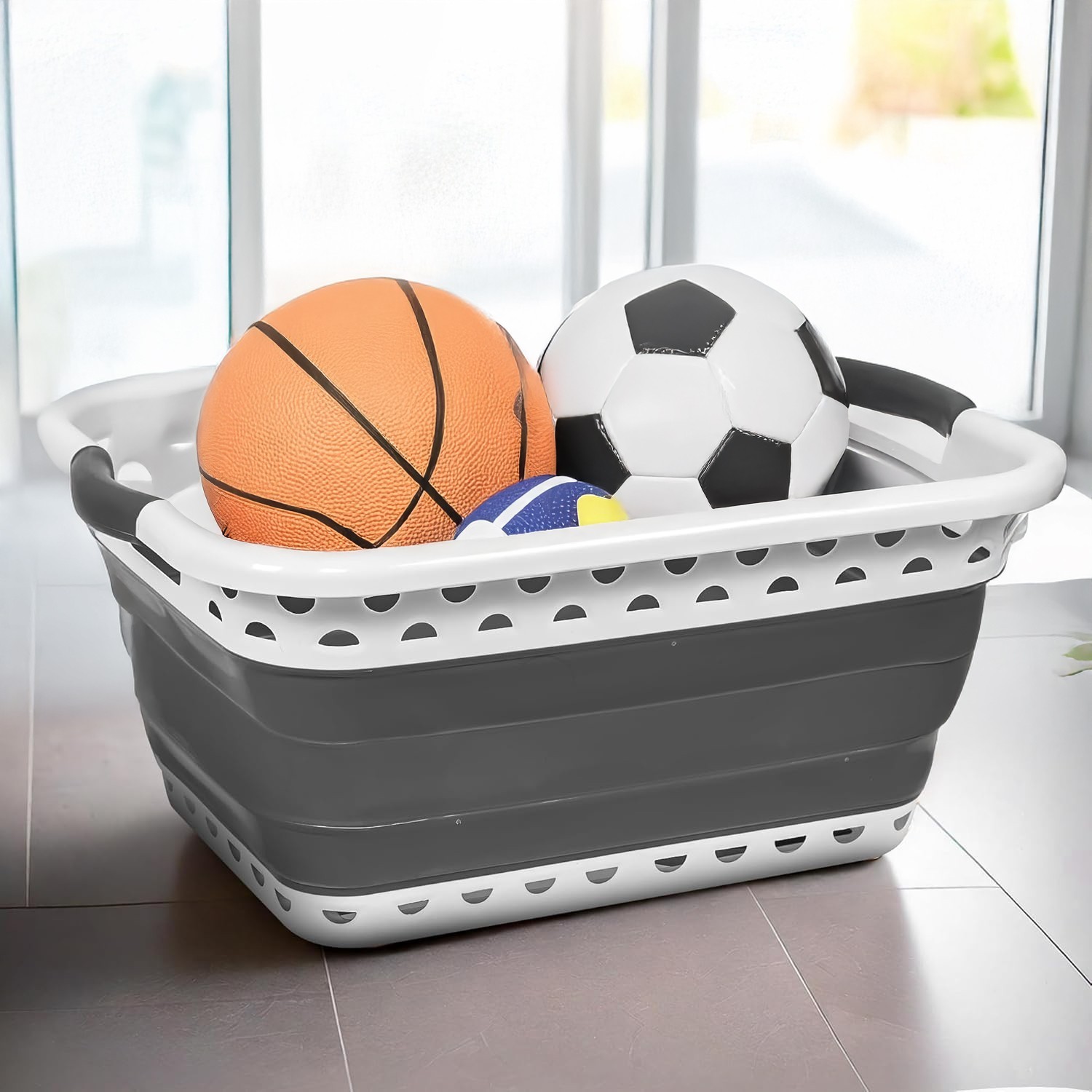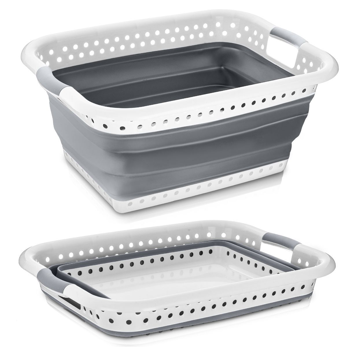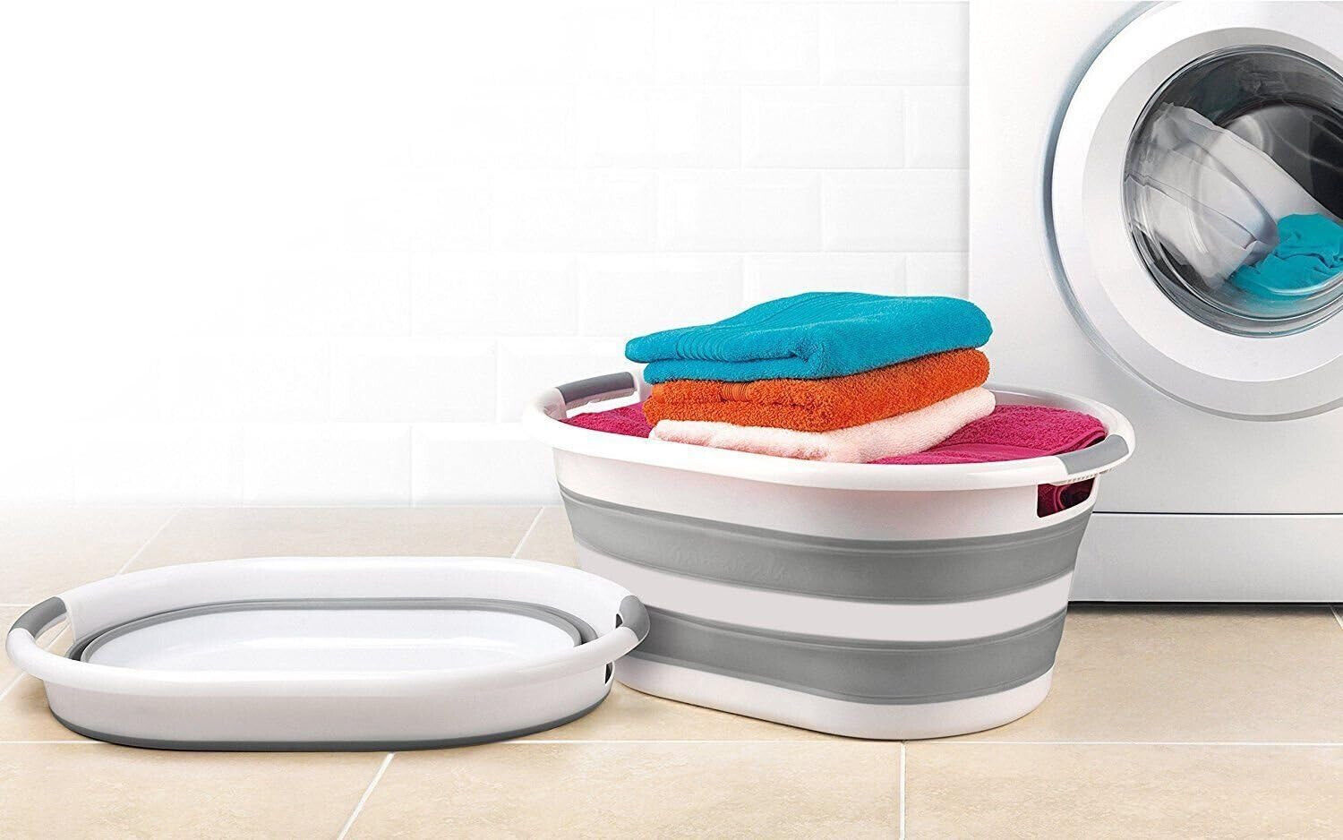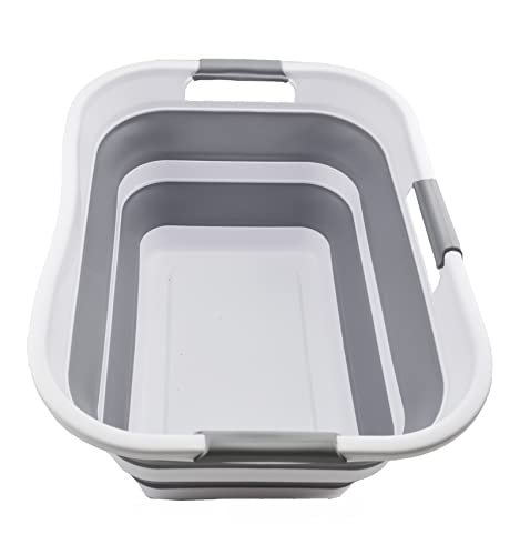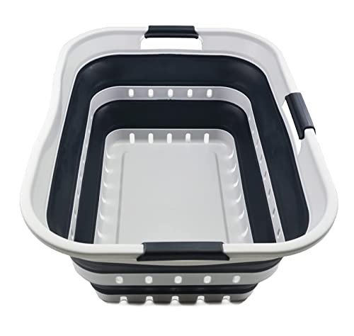 SAMMART 29L Collapsible Plastic Laundry Basket-Foldable Pop Up Storage Container/Organizer-Portable Washing Tub-Space Saving Hamper/Basket-Basket-Water capacity 24L (1, White/Grey/White)