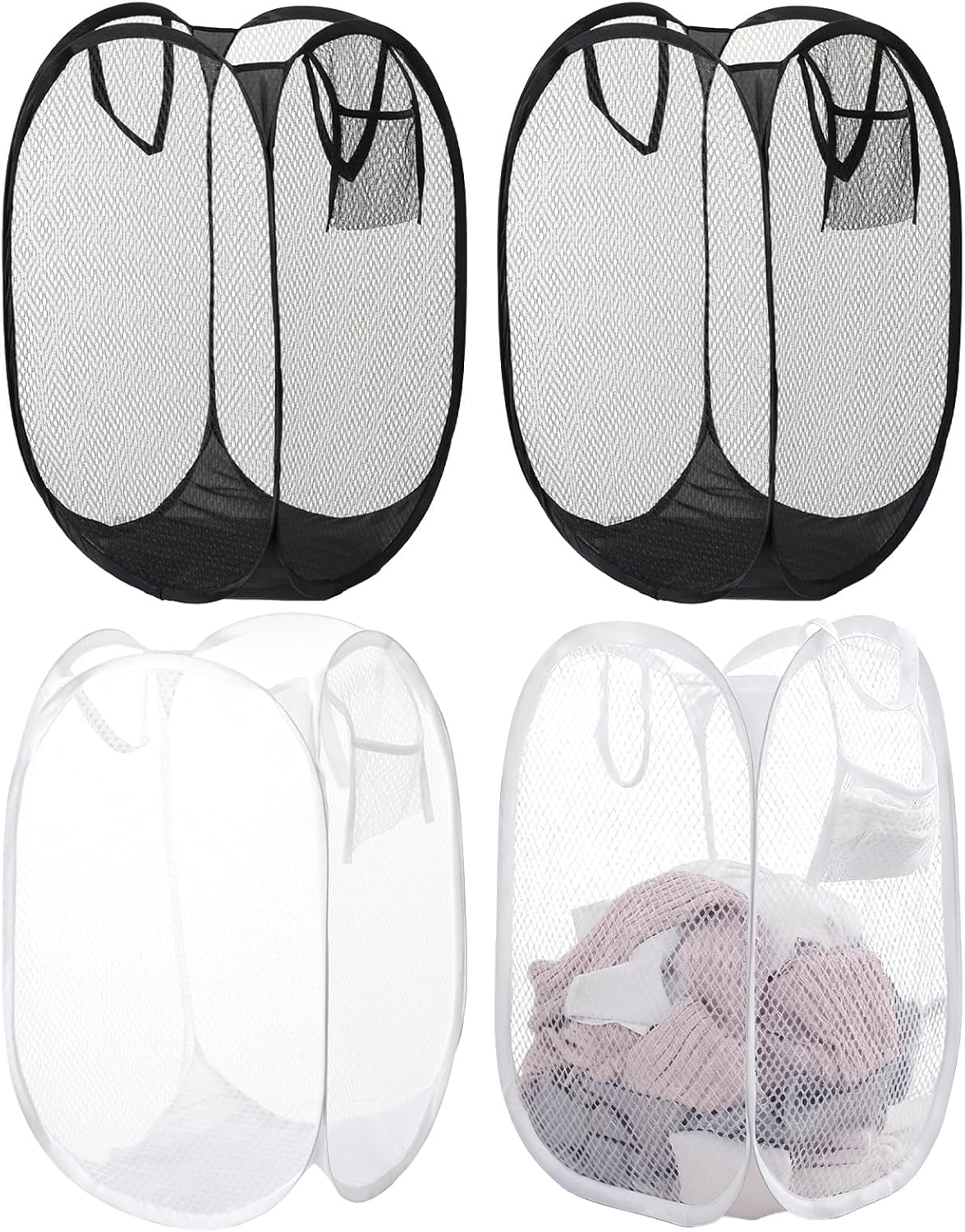 4 Pcs Pop up Laundry Basket, Folding Washing Basket, Mesh Collapsible Cloth Bask