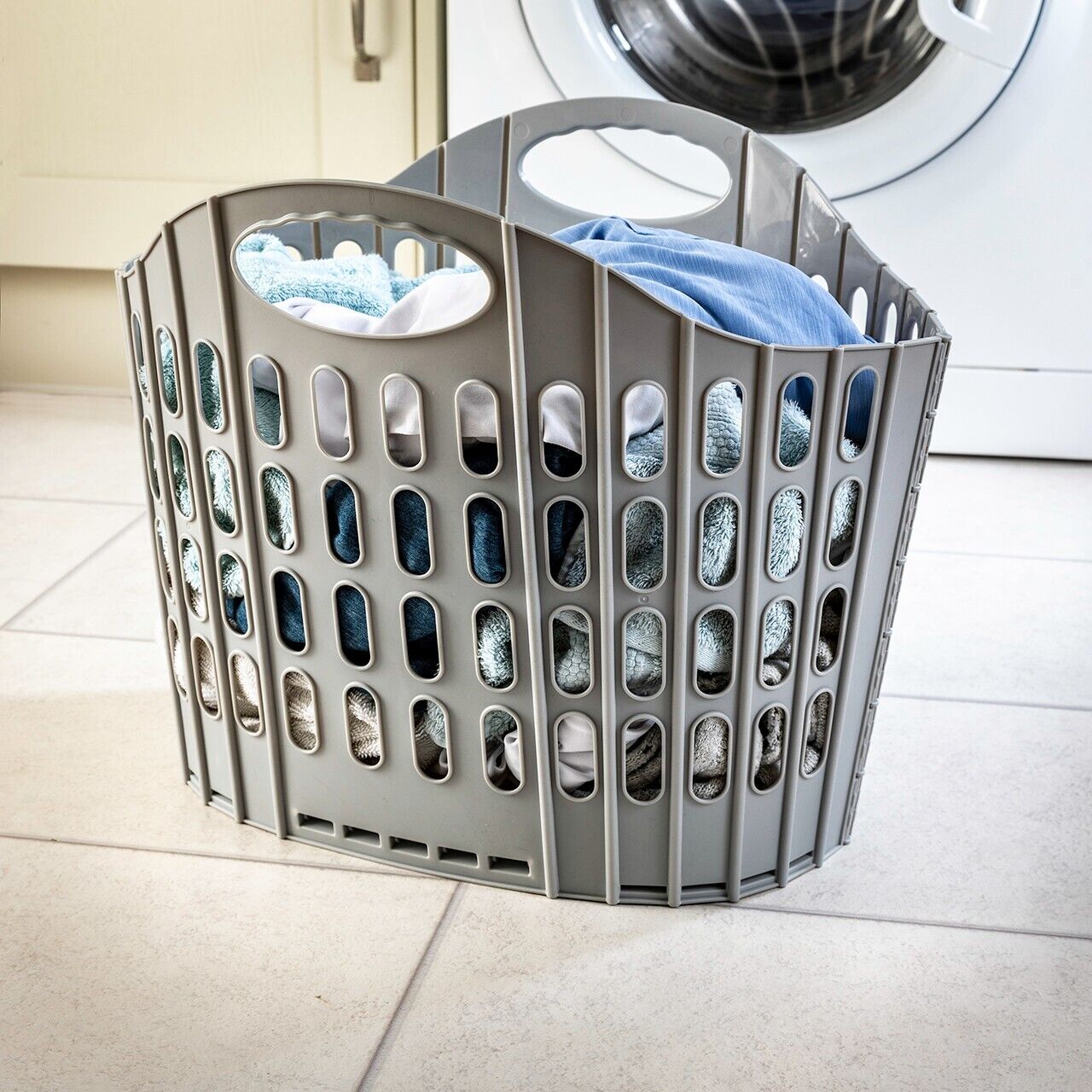 Crystals® Oval Shape Large Collapsible Fold Able Laundry Basket Pop Up Clothing Washing Storage Bucket - Grey
